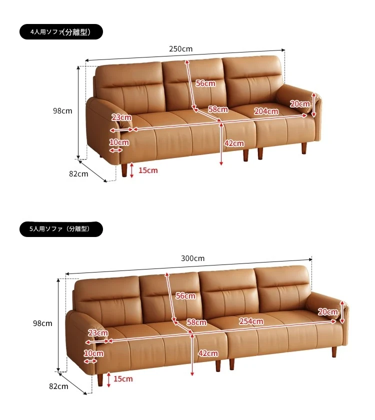 【厚手一層黄牛革+ラテックススポンジ+フレーム生涯保証】2.5メートル四人用(分割) ラグジュアリー版