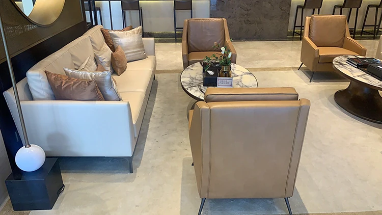 販売オフィス用の洽談テーブルセット、一卓四椅子の組み合わせ。円形テーブルで、軽やかな北欧スタイルと新中式デザインのソファがセットになっています。洗練された空間で、ビジネスの成功をサポートします!