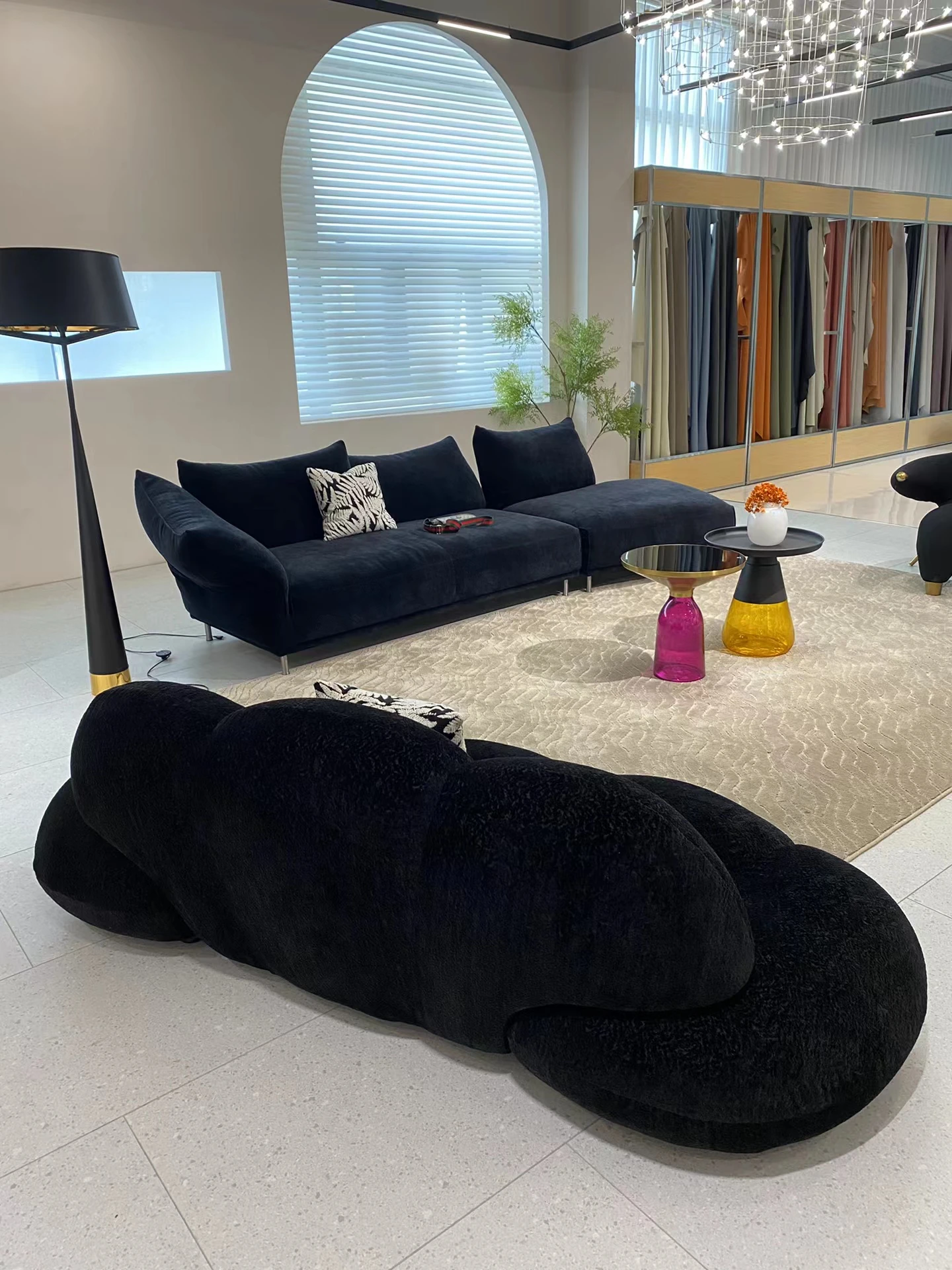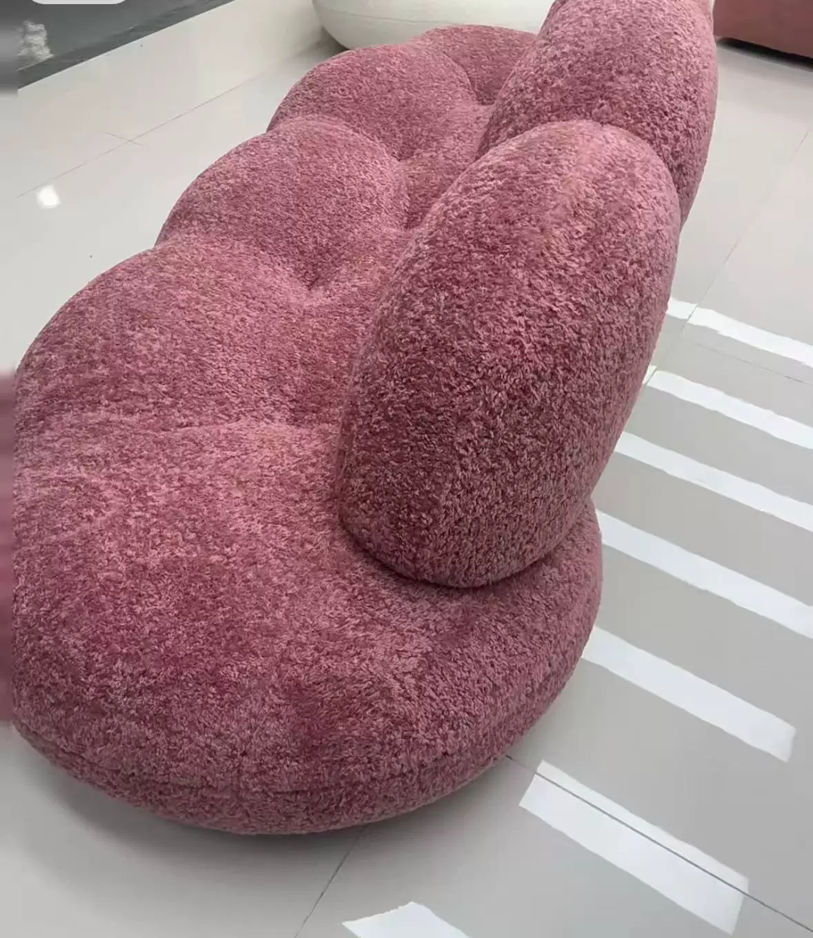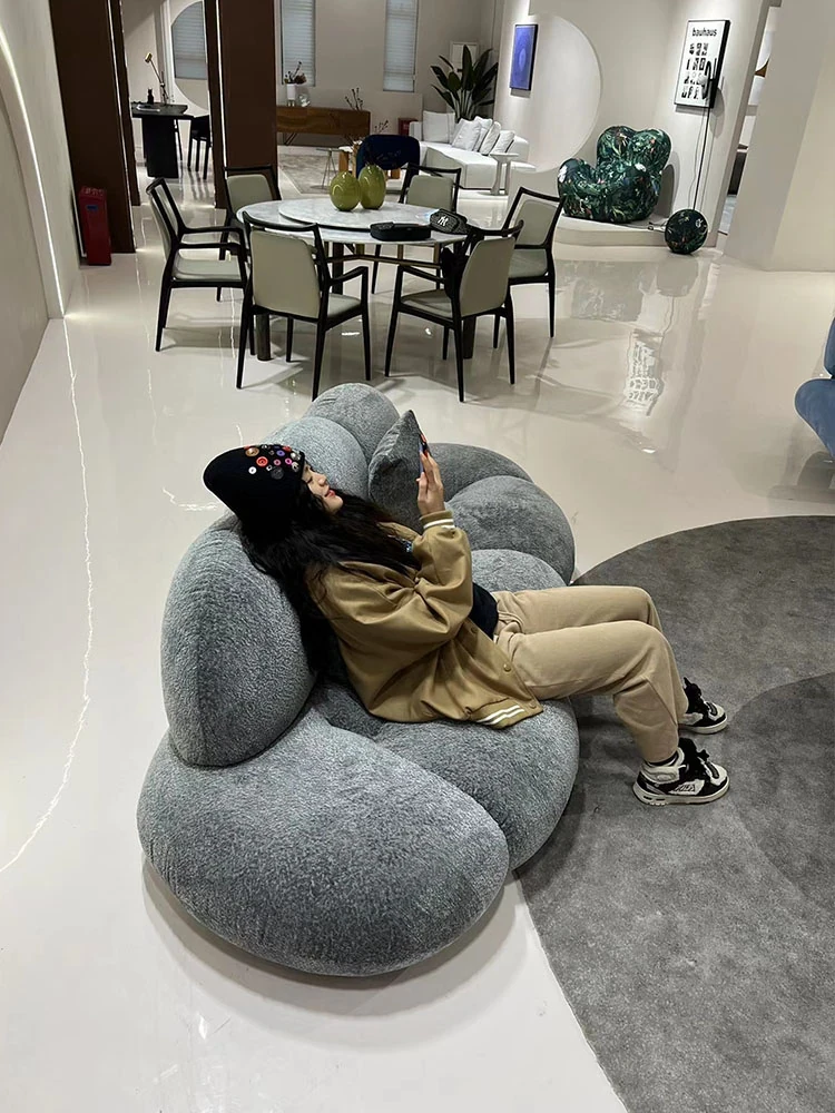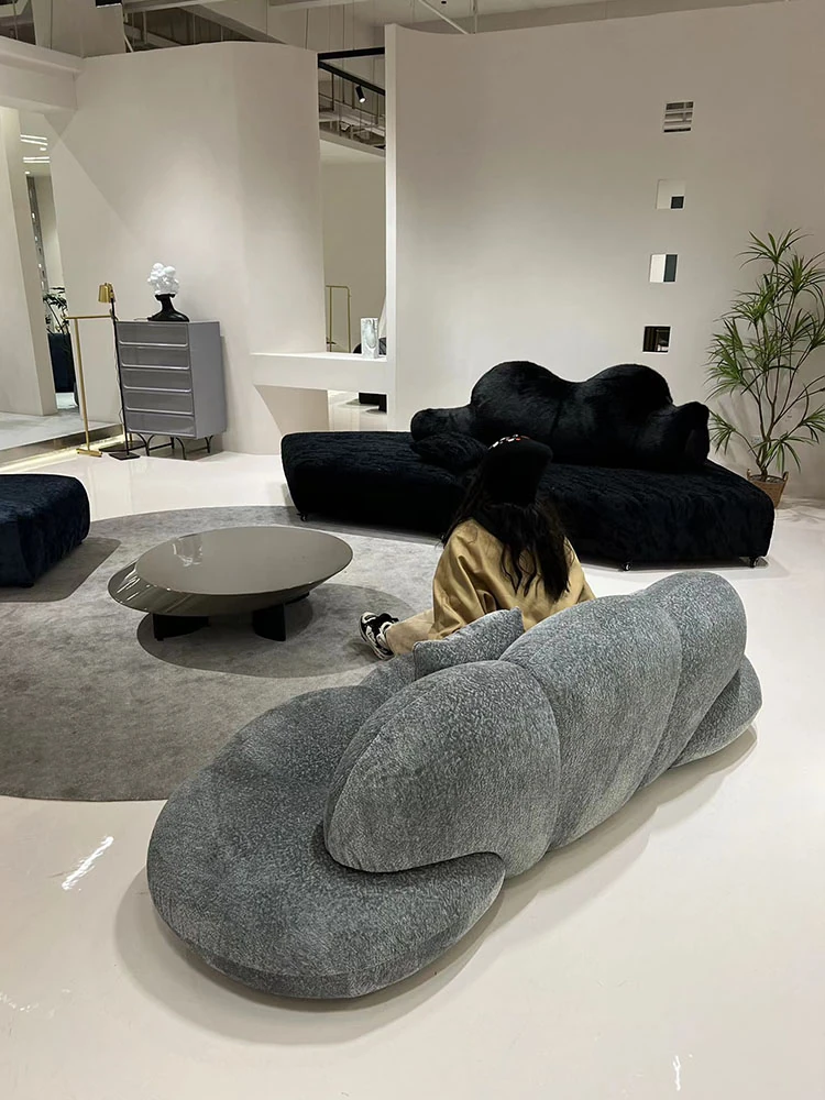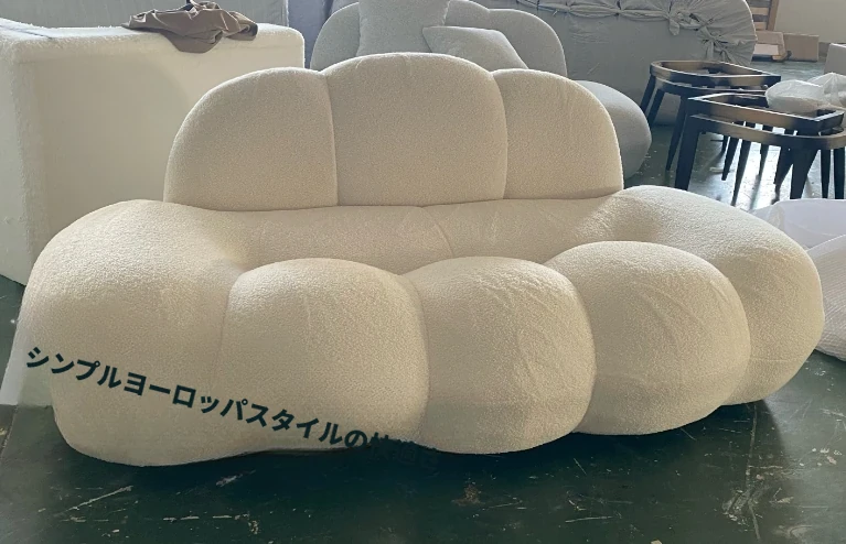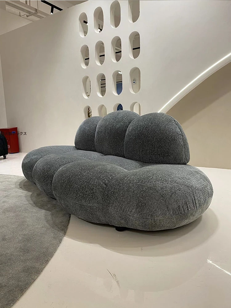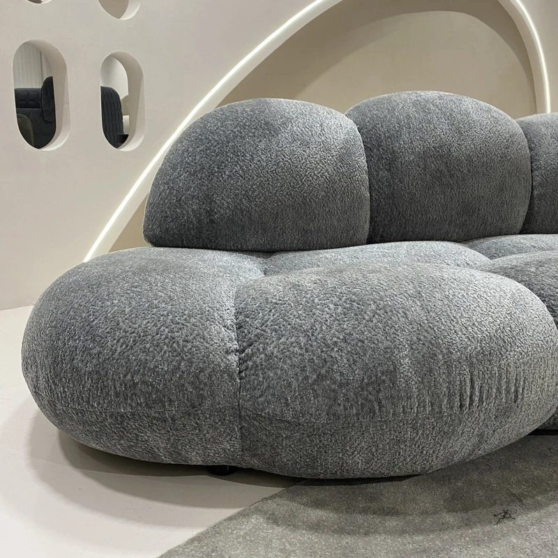小型リビングに最適!デザイナーによるモダンミニマルな布製ソファ - 雲のような心地よさを提供するユニークな形状のシャニールソファ。あなたの空間をおしゃれに彩ります!