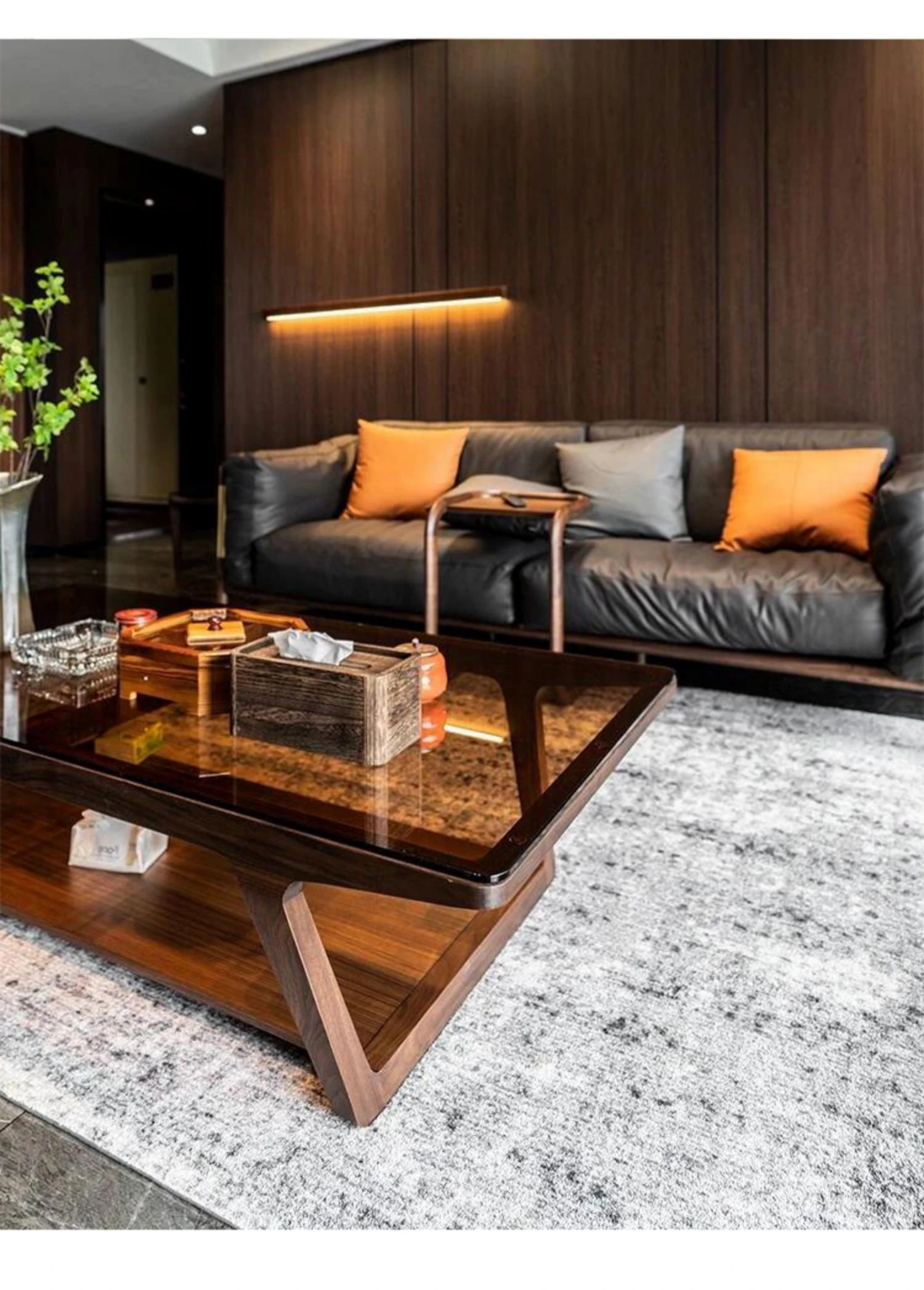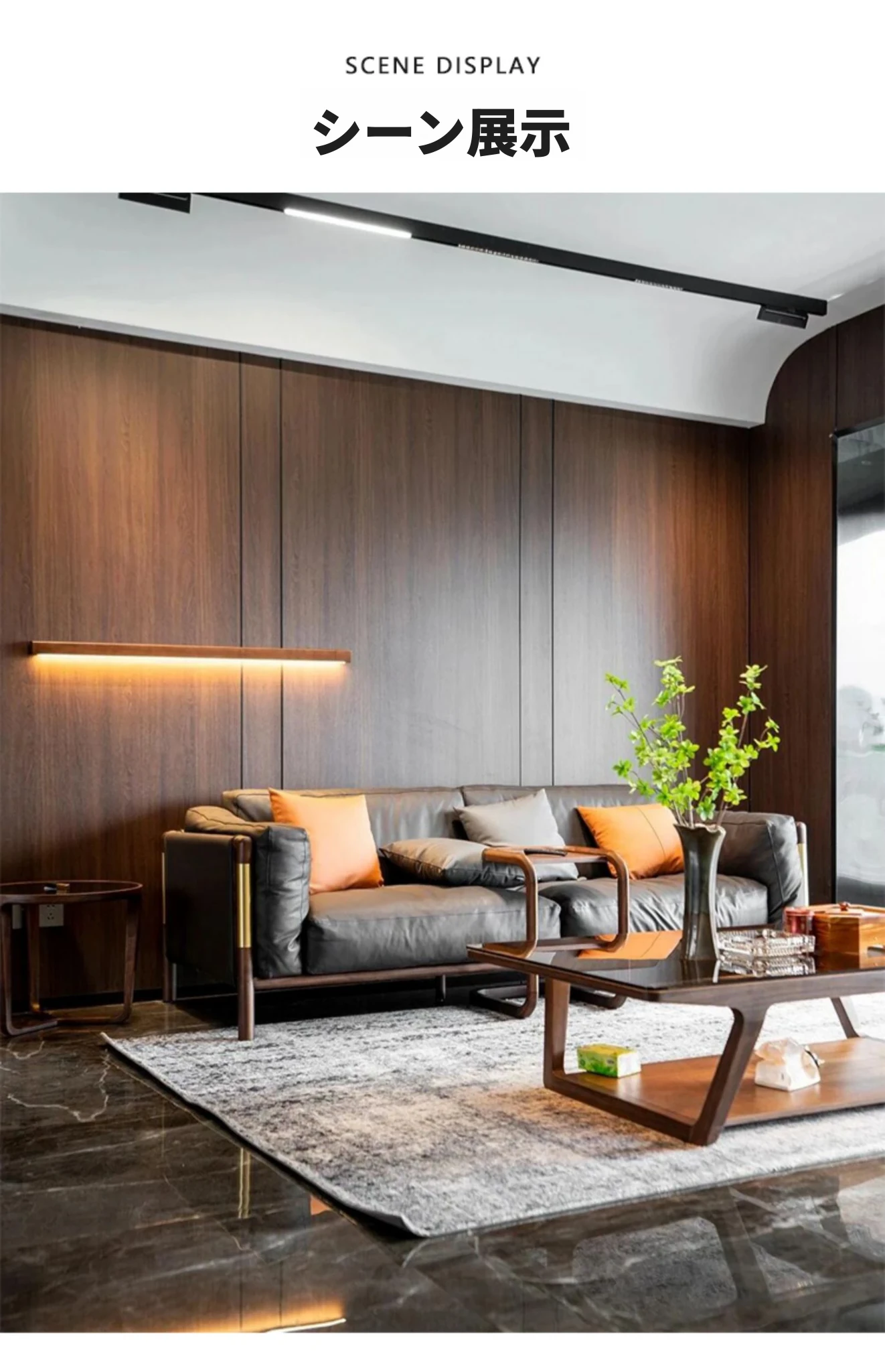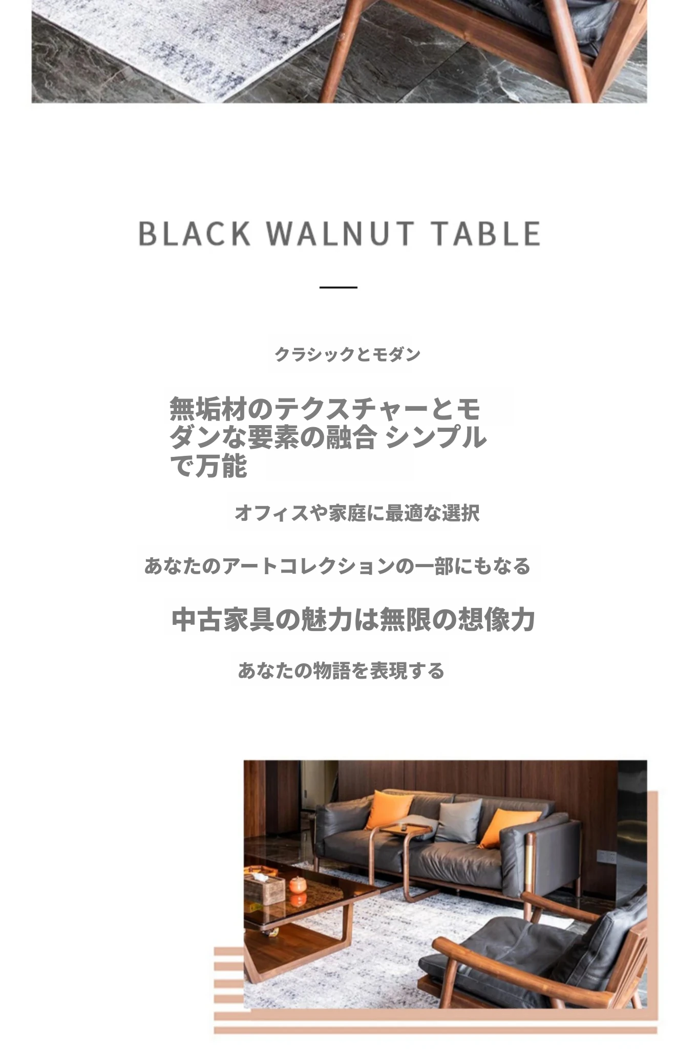 北米産ブラックウォールナットソファとコーヒーテーブルのセット - シンプルなデザインでオフィスやリビングに最適!ホワイトアッシュ材の直線的なスタイルで、大小さまざまなお部屋にぴったりの家具。