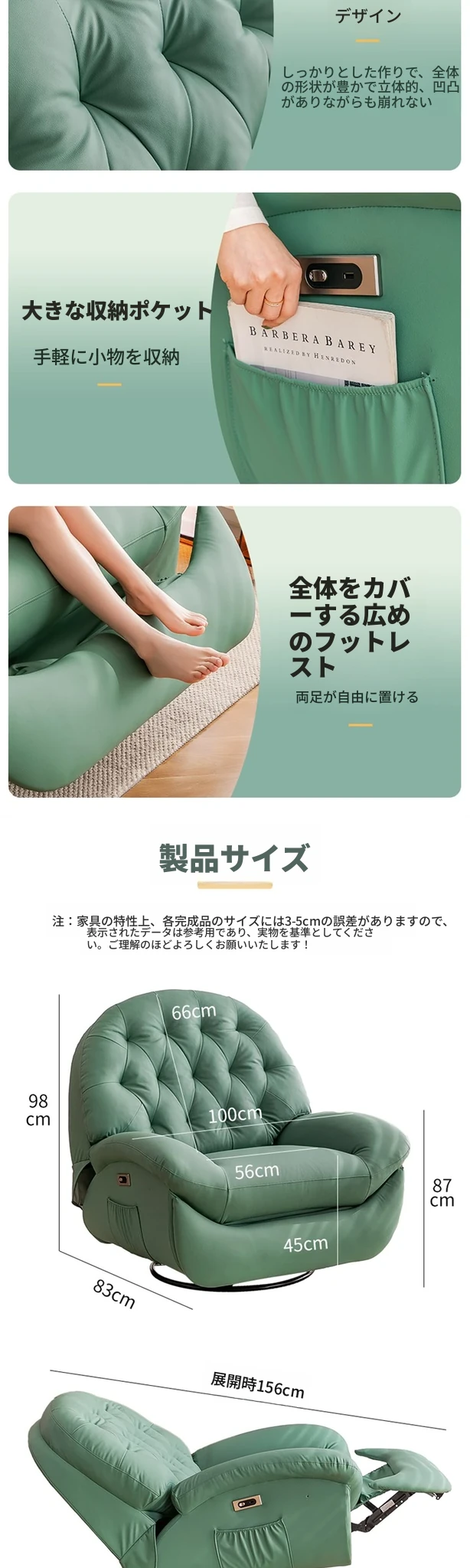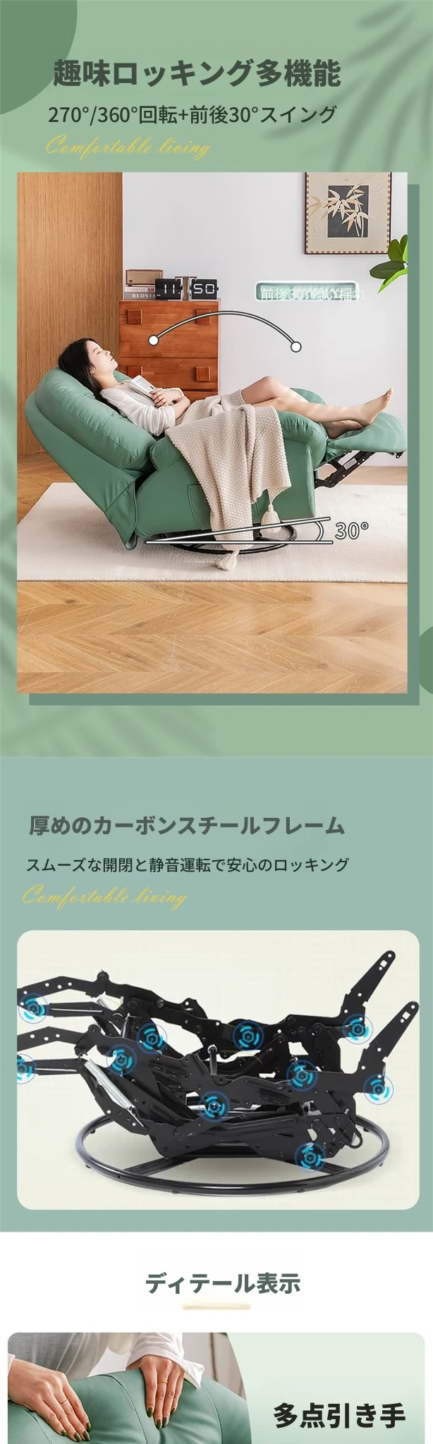 多機能電動ロッキングチェアソファ - シンプルでおしゃれなリビング向け、くつろぎのひとときを演出する一人用リクライニングソファ!家でのリラックスタイムに最適です。