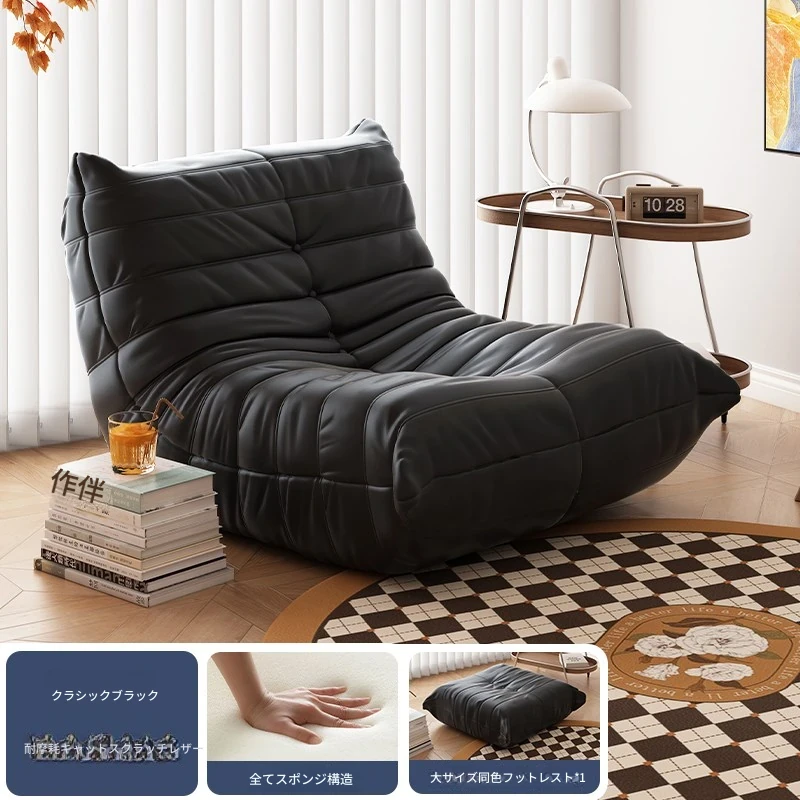 クラシックブラック★耐磨性キャットスクラッチレザー【フロア毛虫ソファ+オットマン】