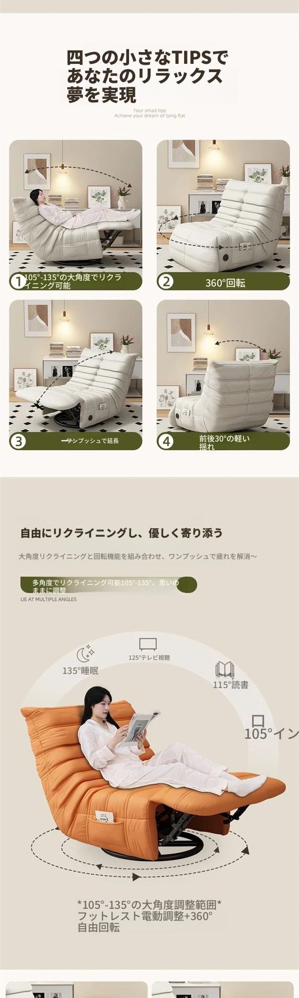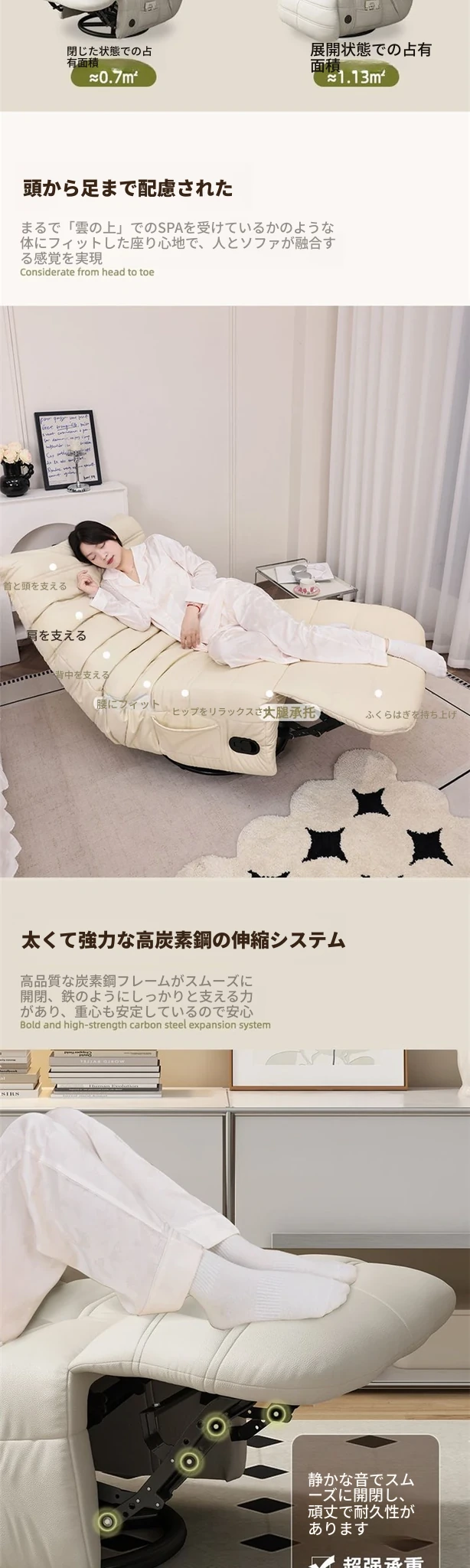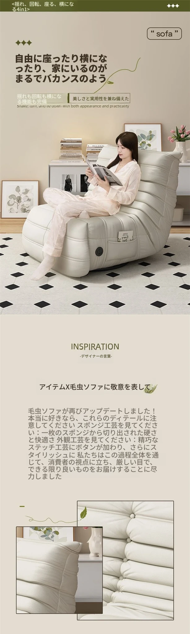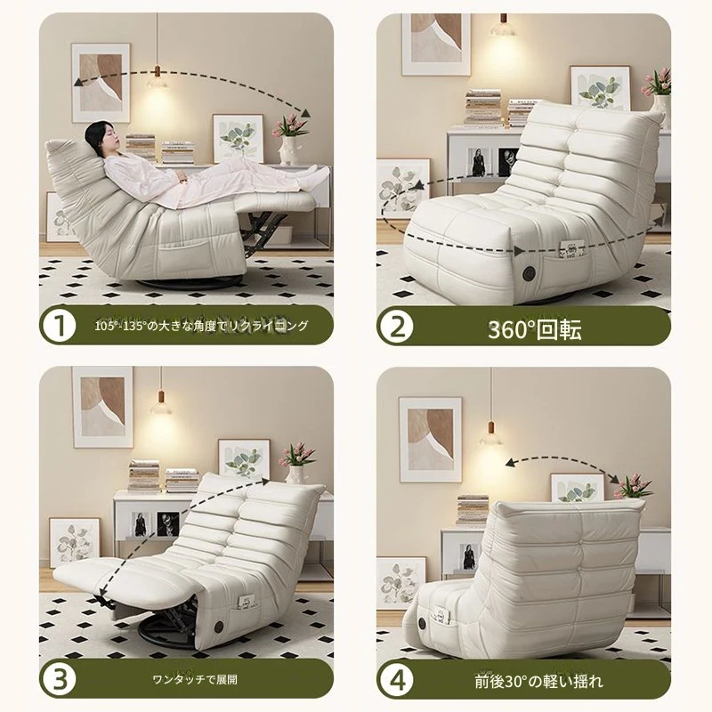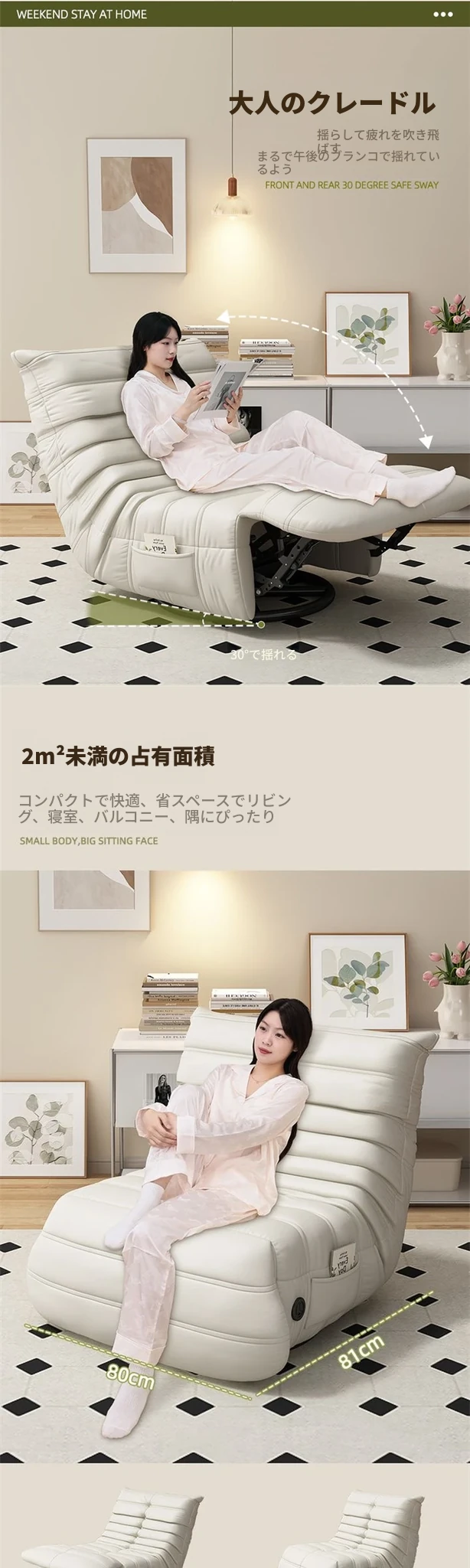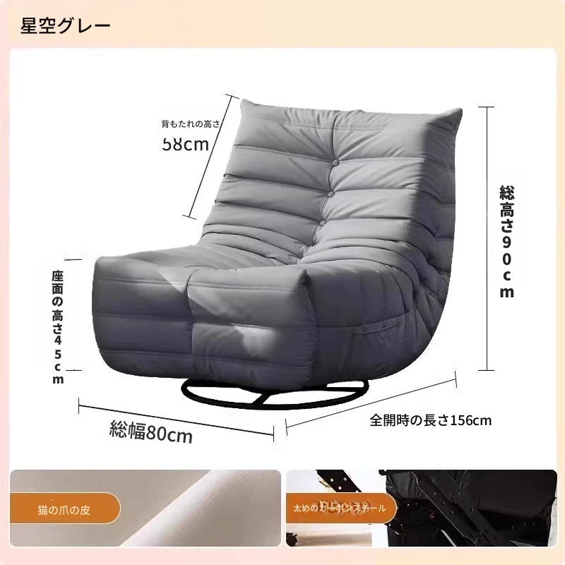 多機能ソファ・人気のモフモフカウチ!一人用、リクライニング可能で、くつろぎながら寝ることもできる。家で使える回転式、バルコニーにぴったりなリラックスチェア!
