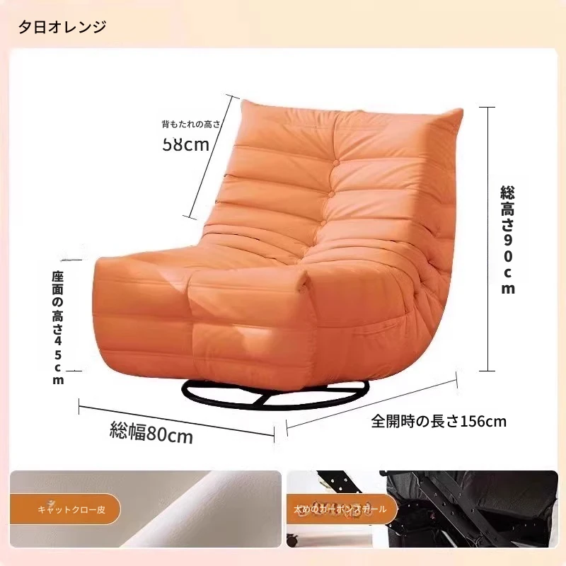 夕日オレンジ★耐磨性キャットスクラッチレザー【手動タイプ+リクライニング+ロッキング+回転】