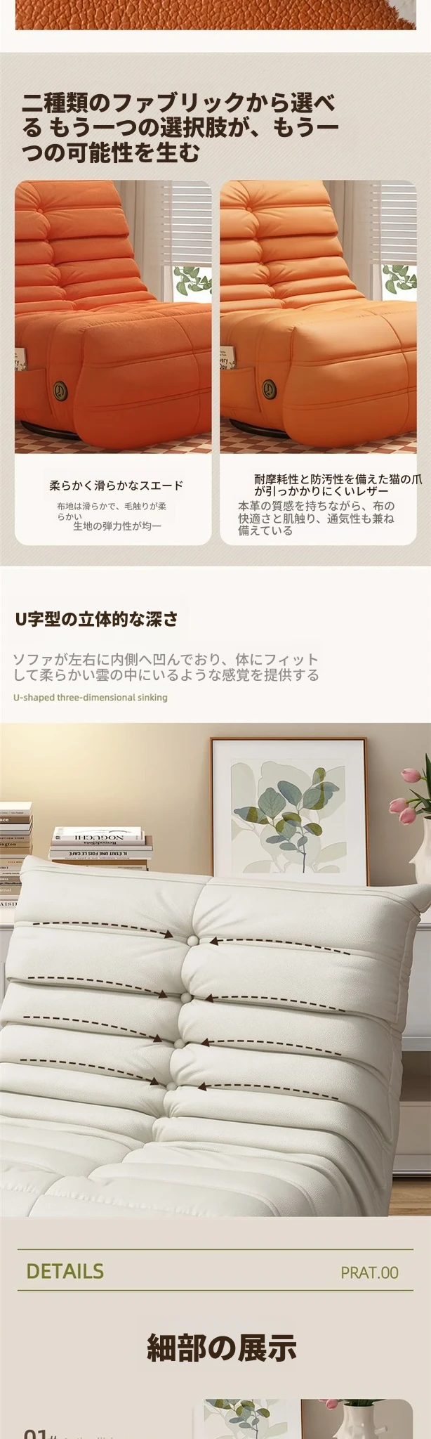 活力オレンジ★耐磨性キャットスクラッチレザー【フロア毛虫ソファ】