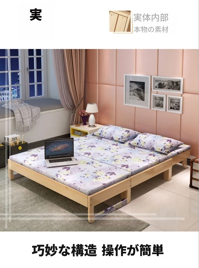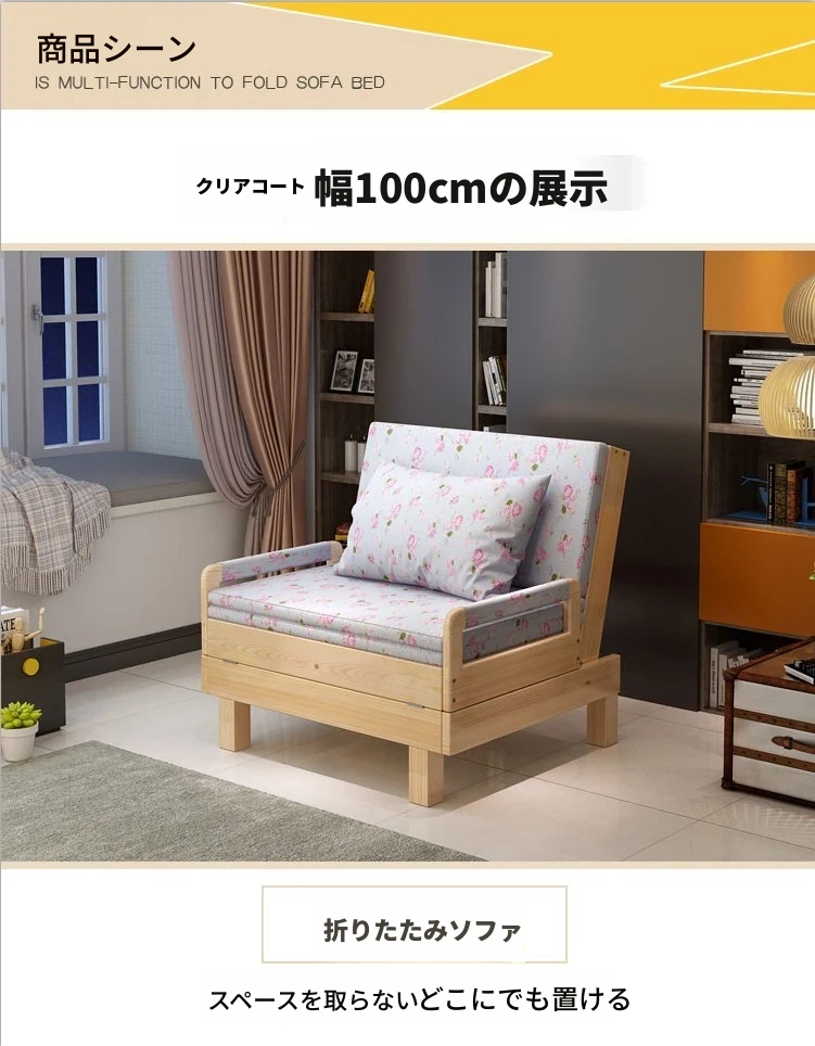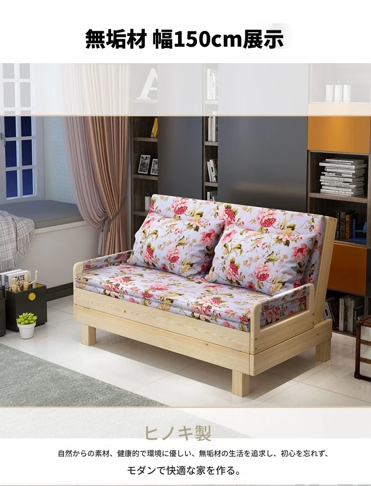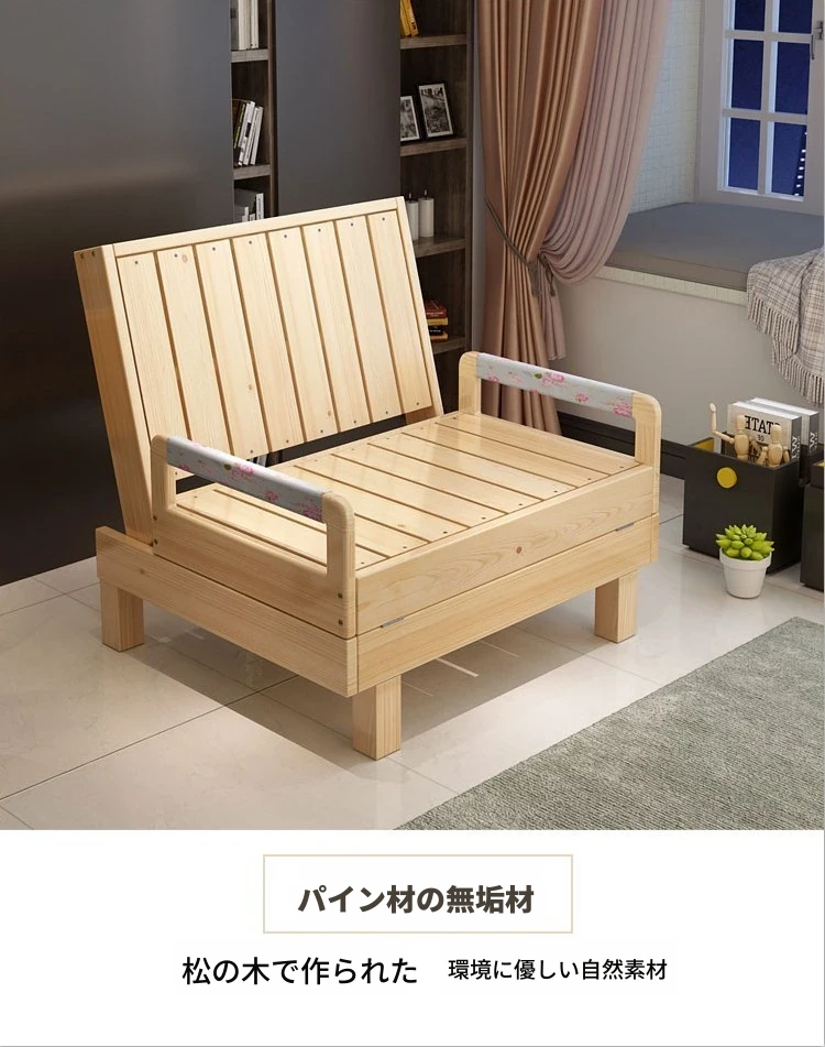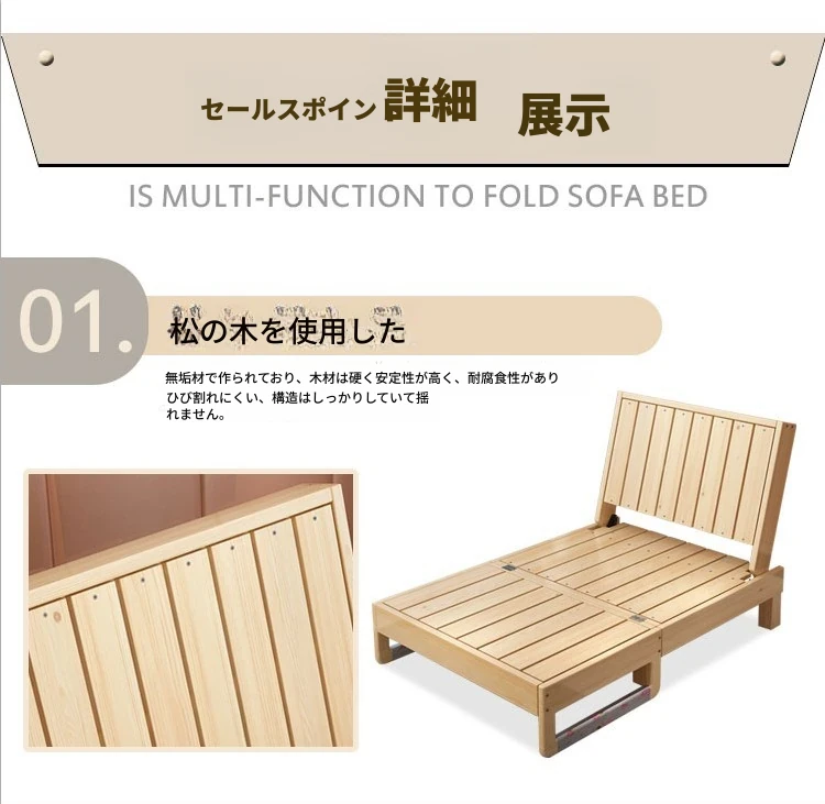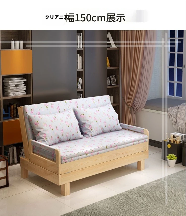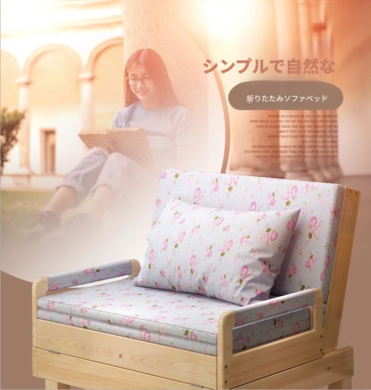 折りたたみ式無垢材ソファベッド - リビング・書斎・バルコニーに最適!1.2m小型住居にもぴったりな多機能ベッド、1.5m・1.8mのダブルサイズもご用意。快適な空間を演出します!