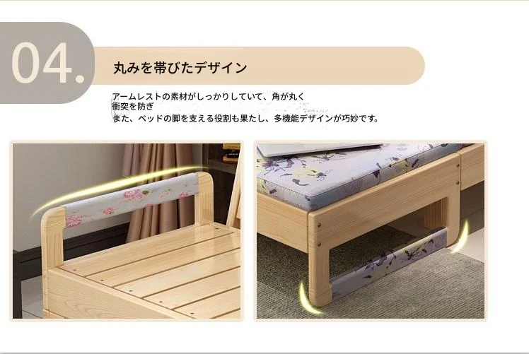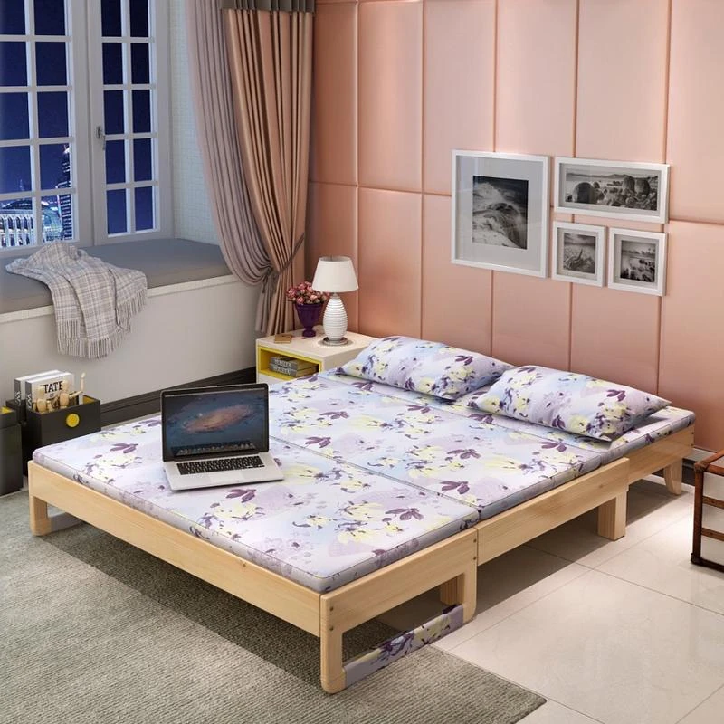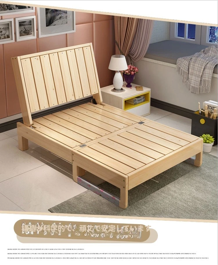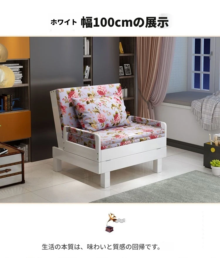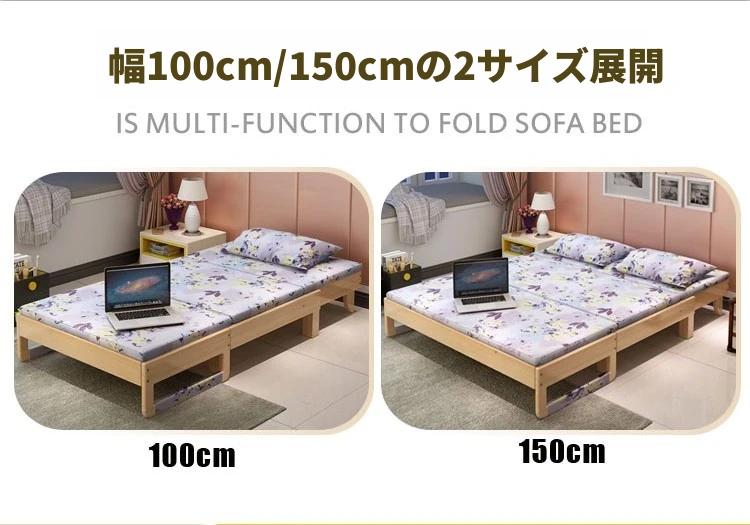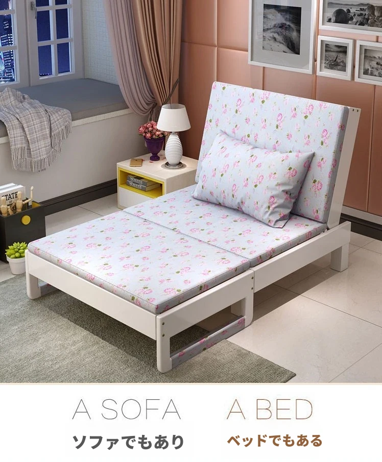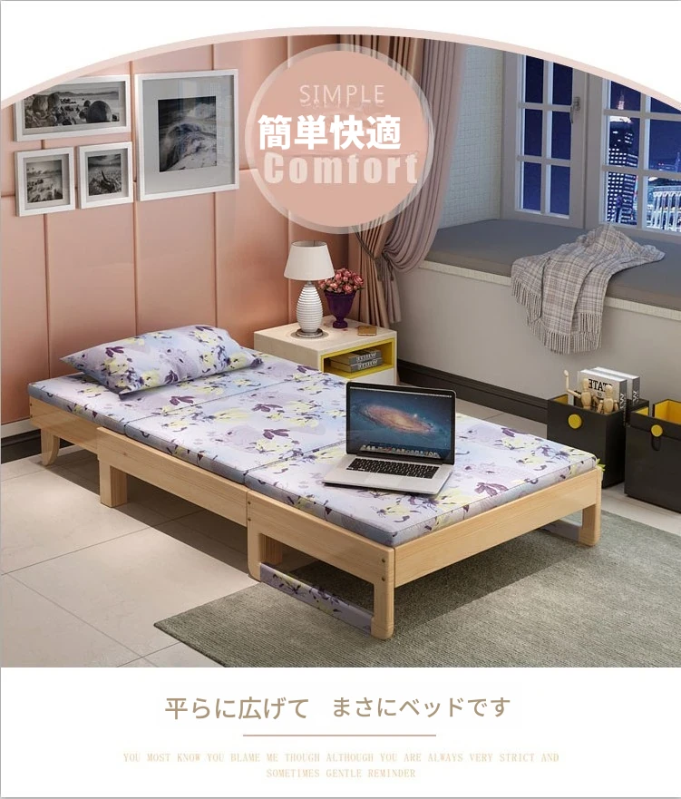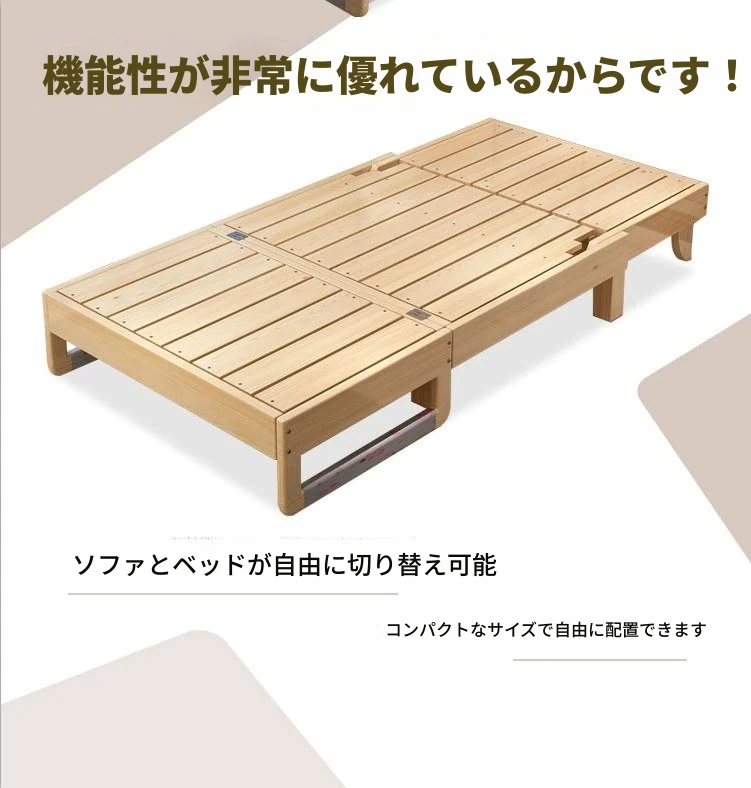 折りたたみ式無垢材ソファベッド - リビング・書斎・バルコニーに最適!1.2m小型住居にもぴったりな多機能ベッド、1.5m・1.8mのダブルサイズもご用意。快適な空間を演出します!