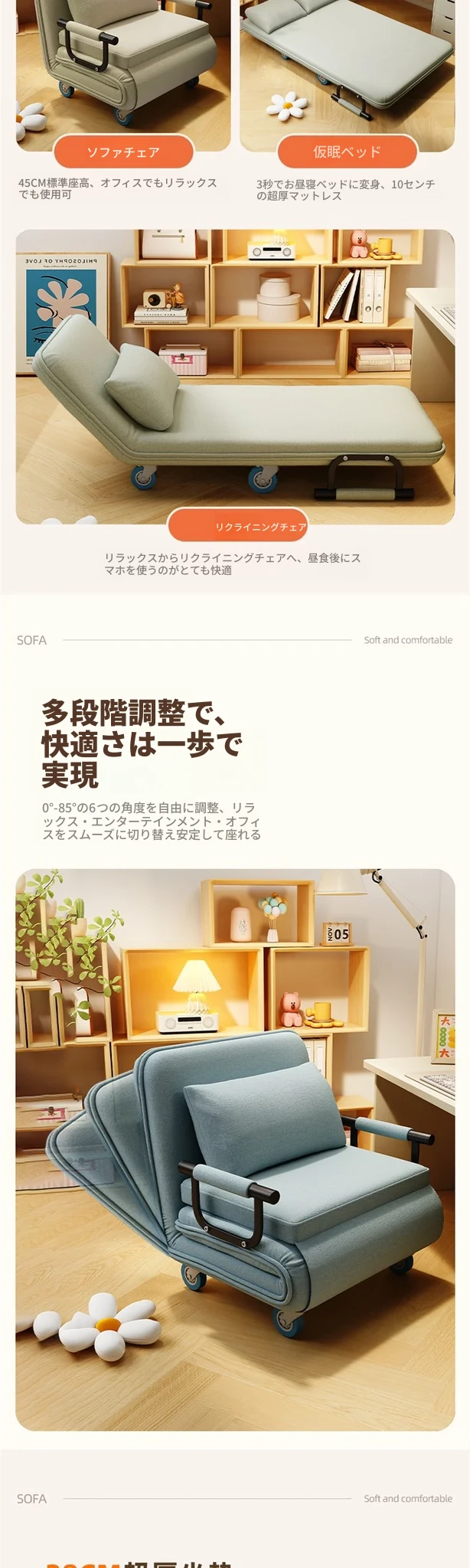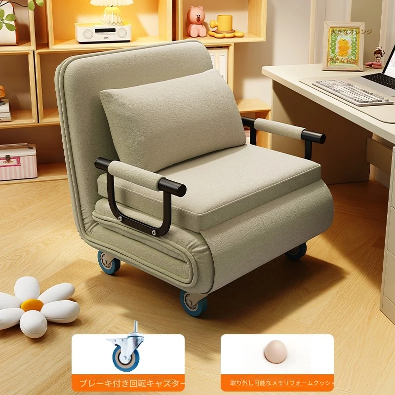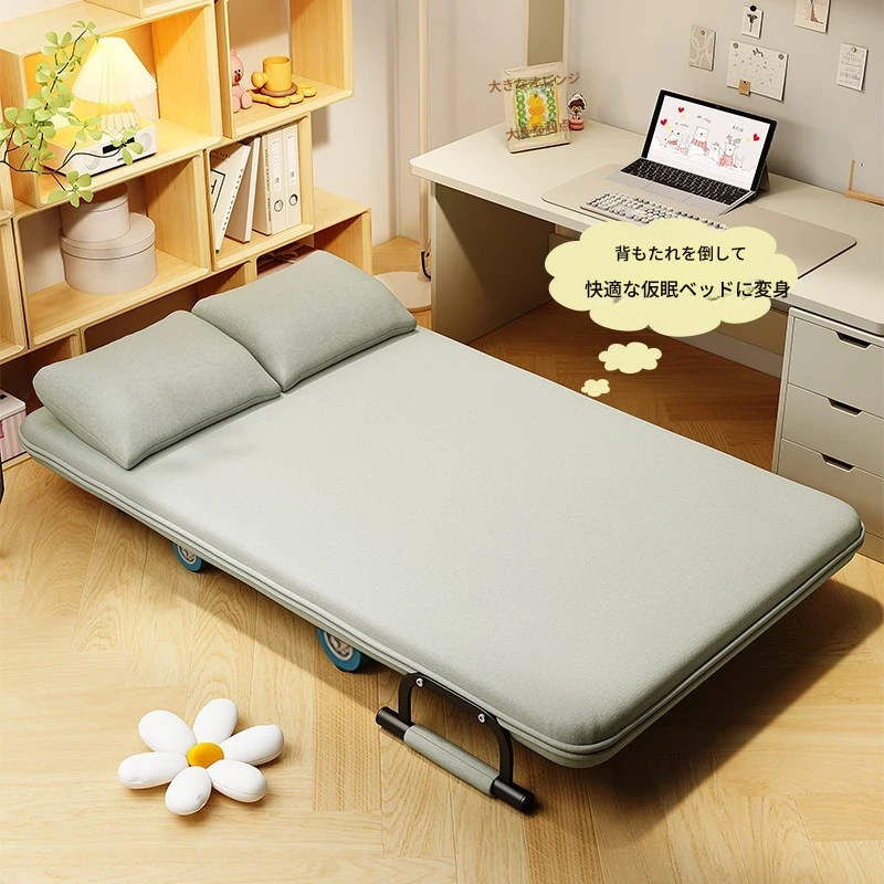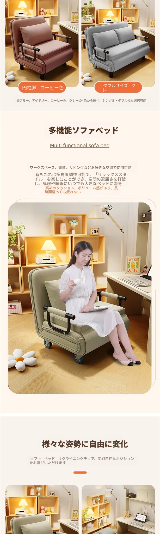 新型2WAY折りたたみソファベッド!小型住宅にぴったりなシングル&ダブルサイズ。360度回転するキャスター付きで、寝室や書斎で快適に使用できます。リラックスしながら作業もできる、最高のアイテムです!