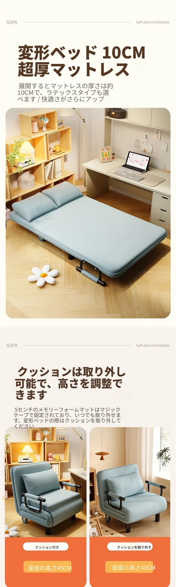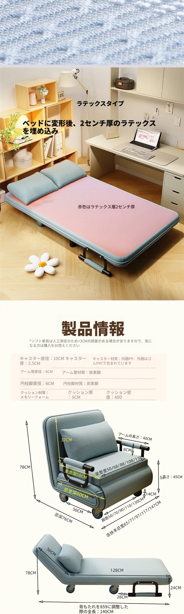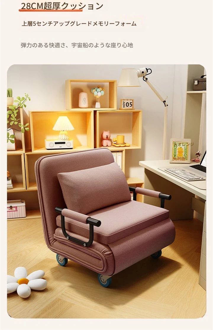 新型2WAY折りたたみソファベッド!小型住宅にぴったりなシングル&ダブルサイズ。360度回転するキャスター付きで、寝室や書斎で快適に使用できます。リラックスしながら作業もできる、最高のアイテムです!