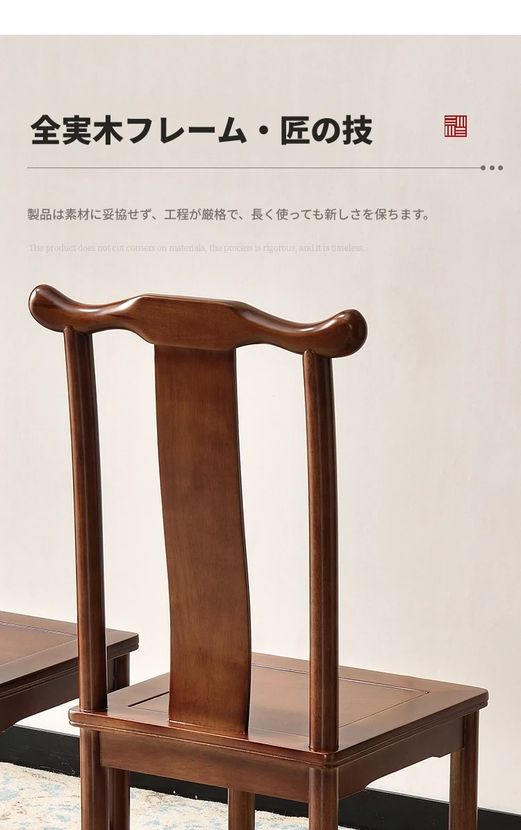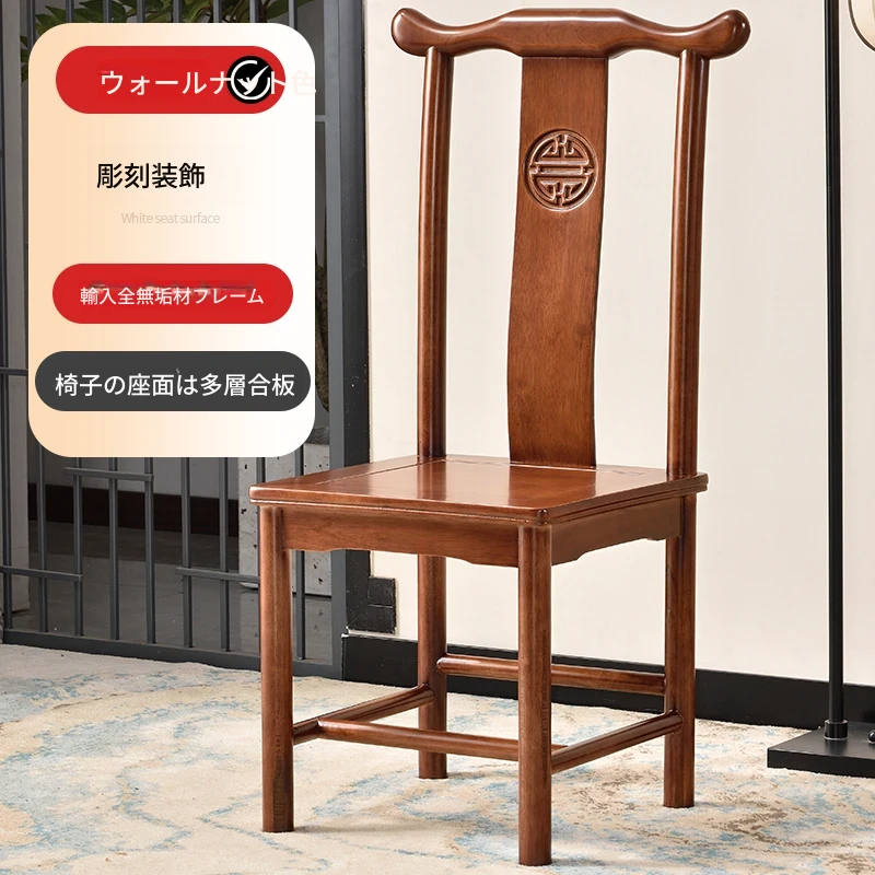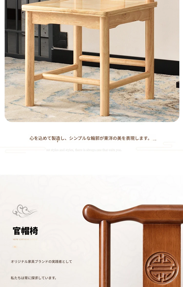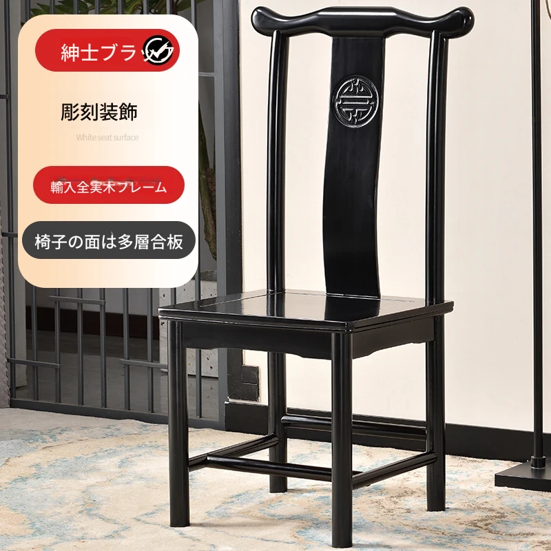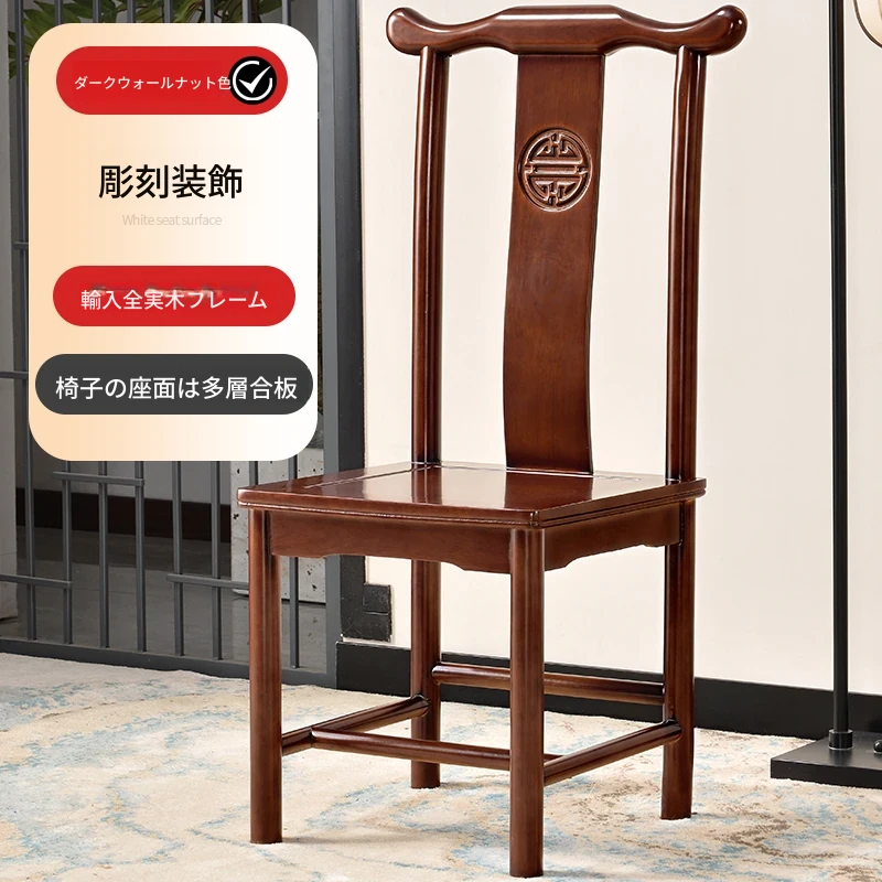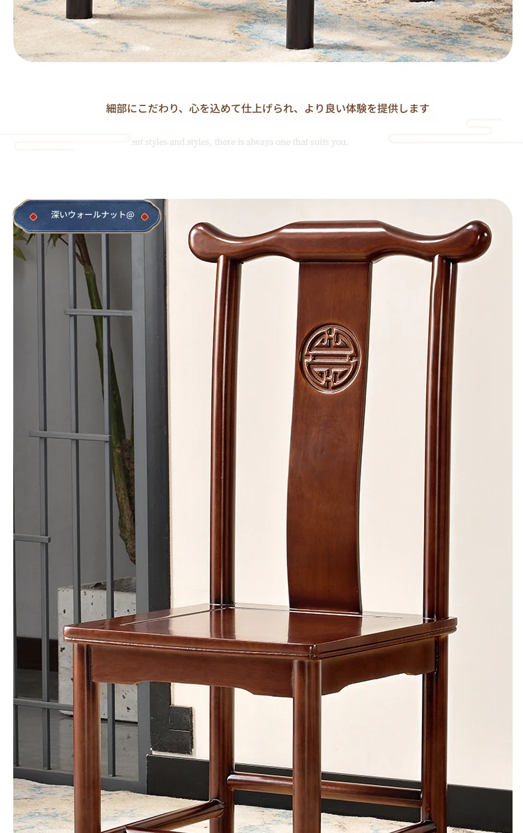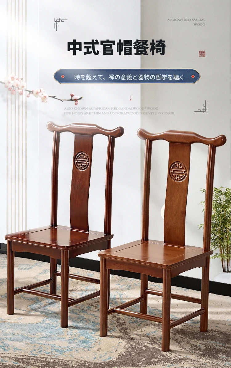 新中式デザインの実木製ダイニングチェア|快適な背もたれ付きの牛角椅子|ホテルやレストランにも最適|家庭用にもぴったりなリラックスチェア|高級感あふれる官帽椅子で特別なひとときを!