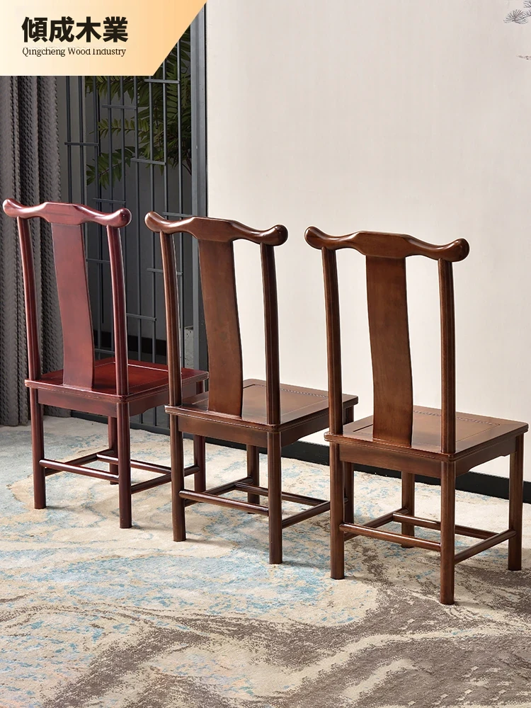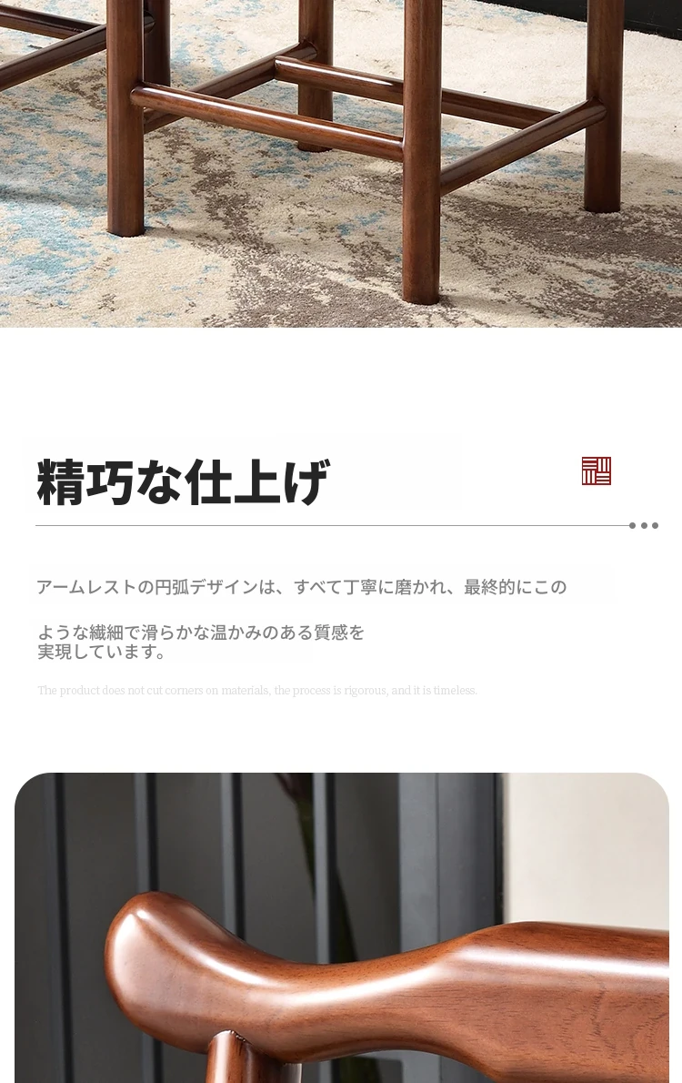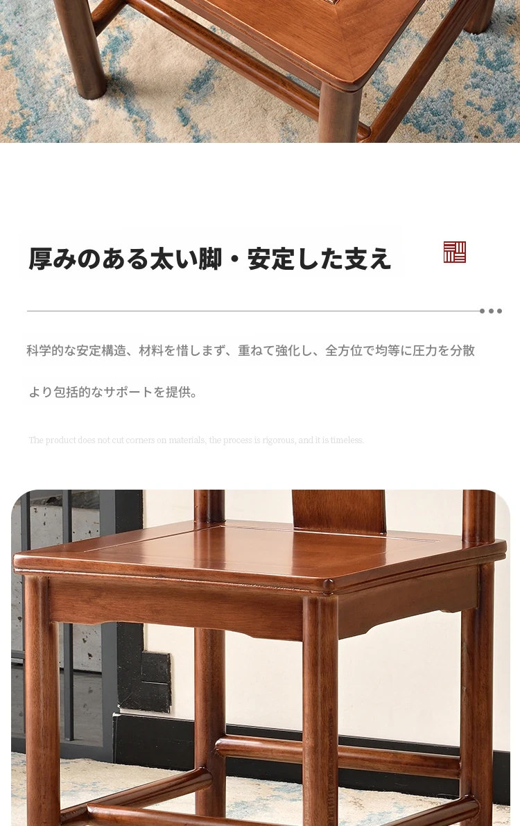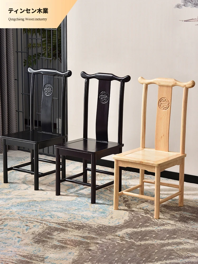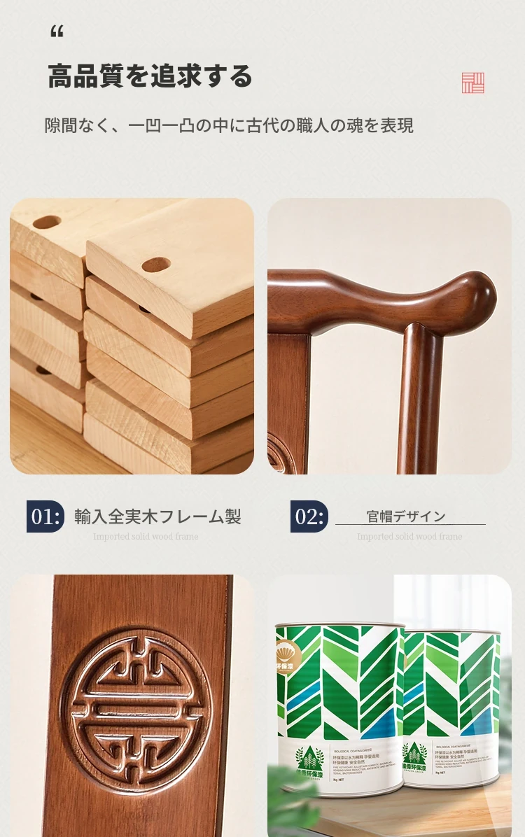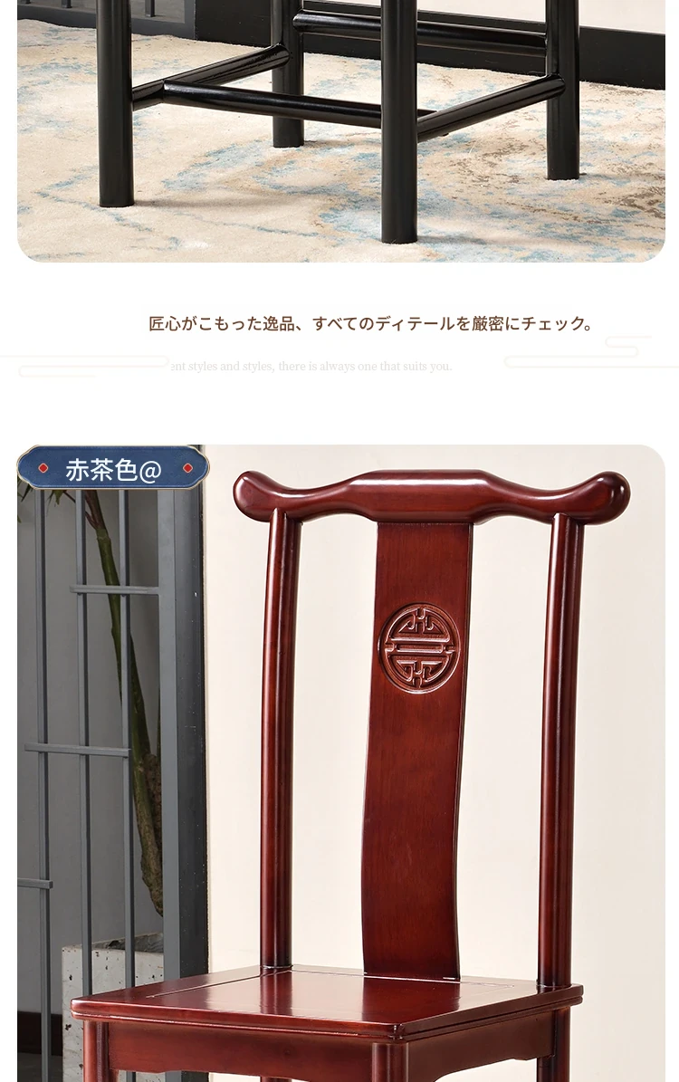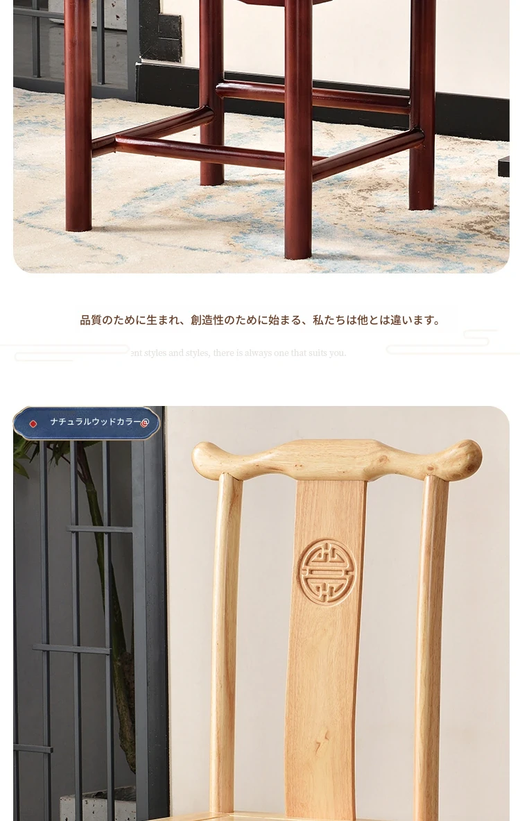 新中式デザインの実木製ダイニングチェア|快適な背もたれ付きの牛角椅子|ホテルやレストランにも最適|家庭用にもぴったりなリラックスチェア|高級感あふれる官帽椅子で特別なひとときを!