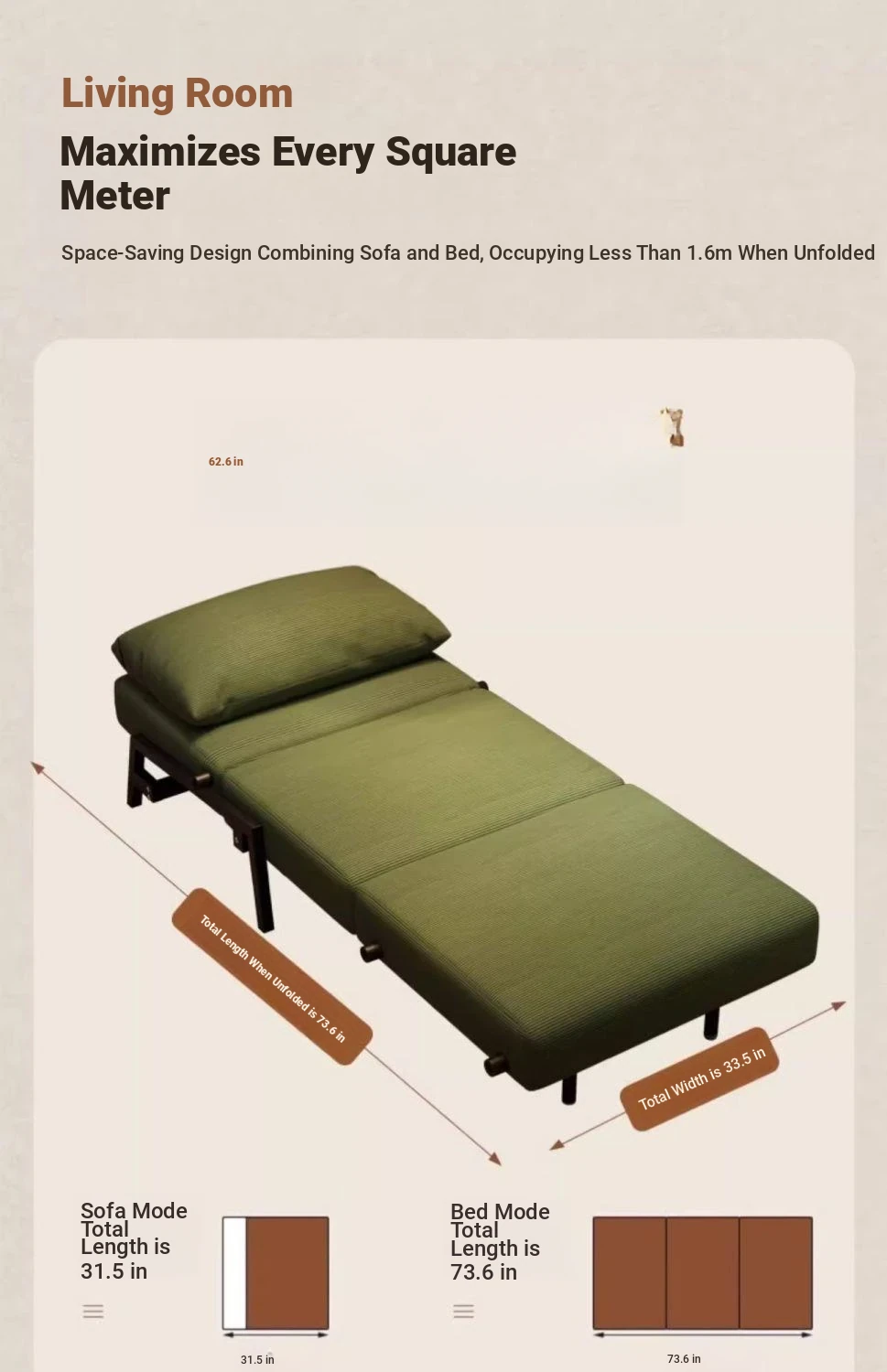New Versatile Foldable Sofa Bed for Small Spaces - Compact Double/Single Use, Perfect for Home and Balcony, Multi-functional Design for Ultimate Comfort!