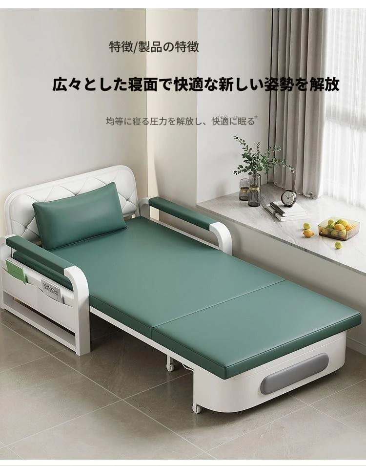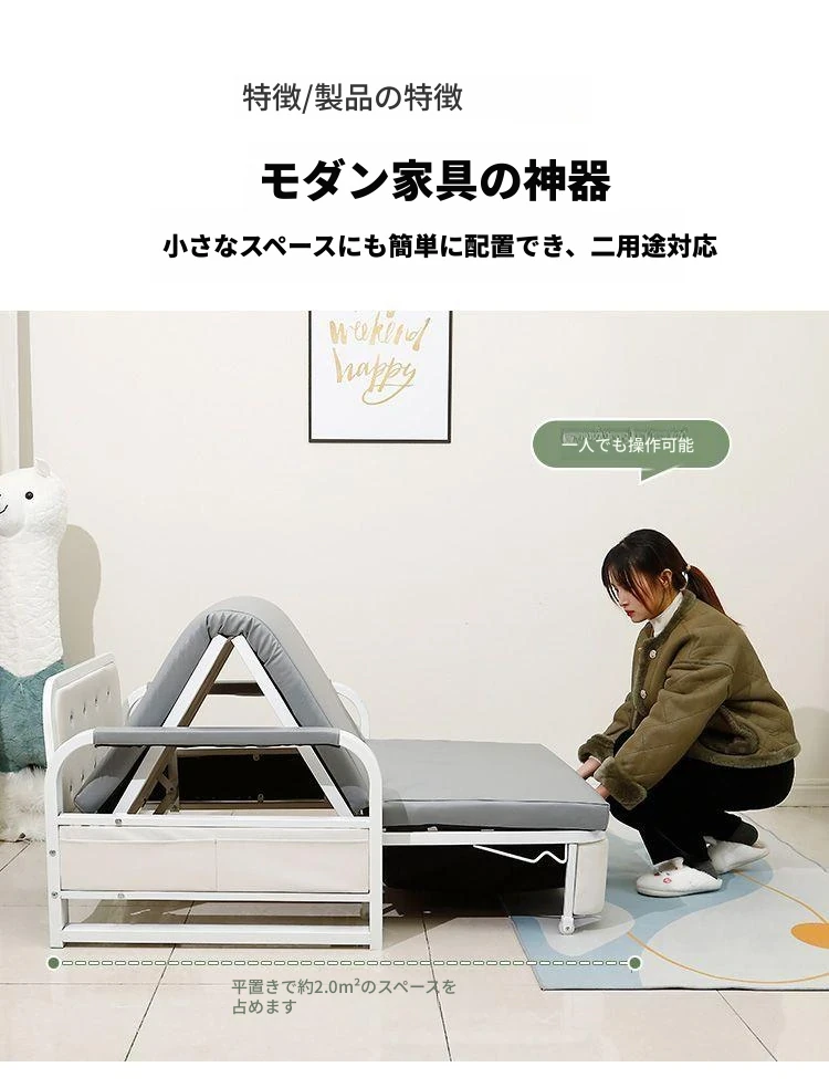 新型折りたたみソファベッド|1人用|リビングやバルコニーに最適|省スペースで多機能!快適な睡眠空間を実現する、スタイリッシュなデザインの折りたたみベッドです。
