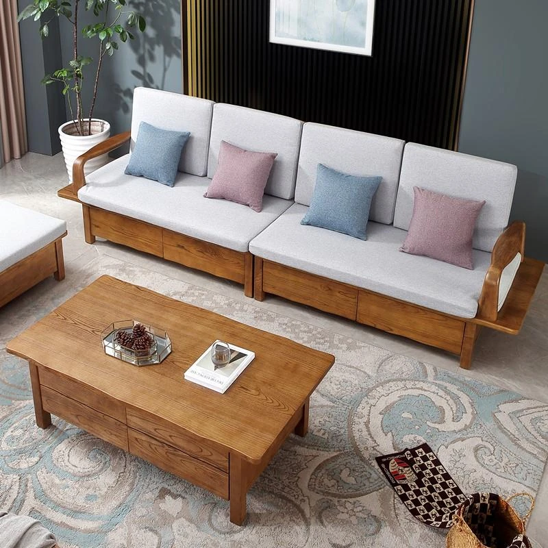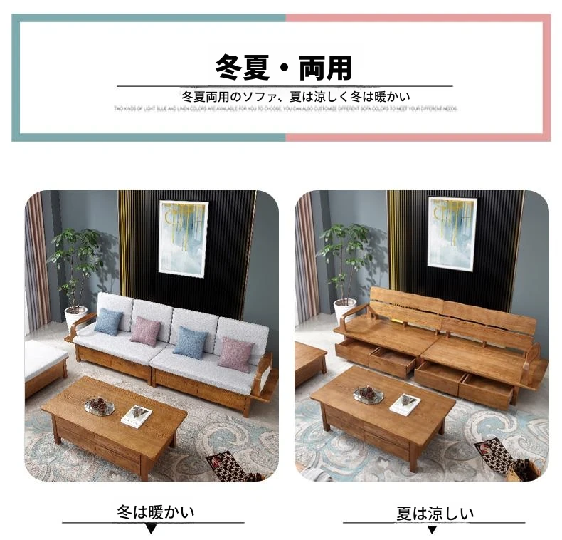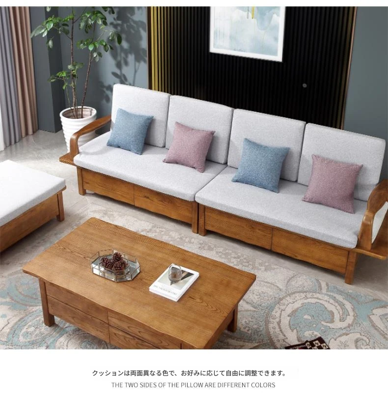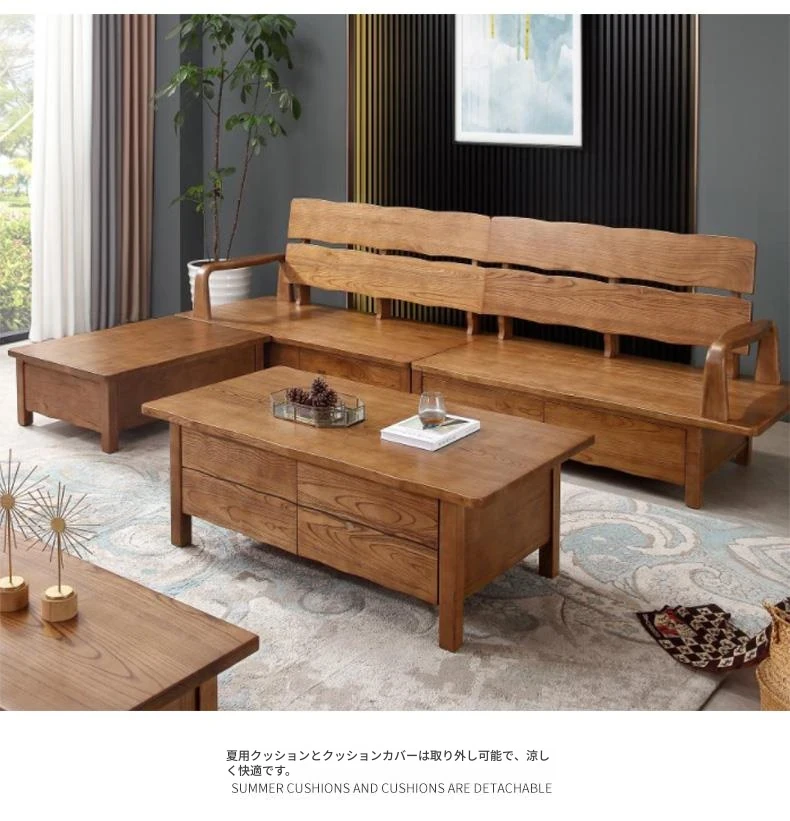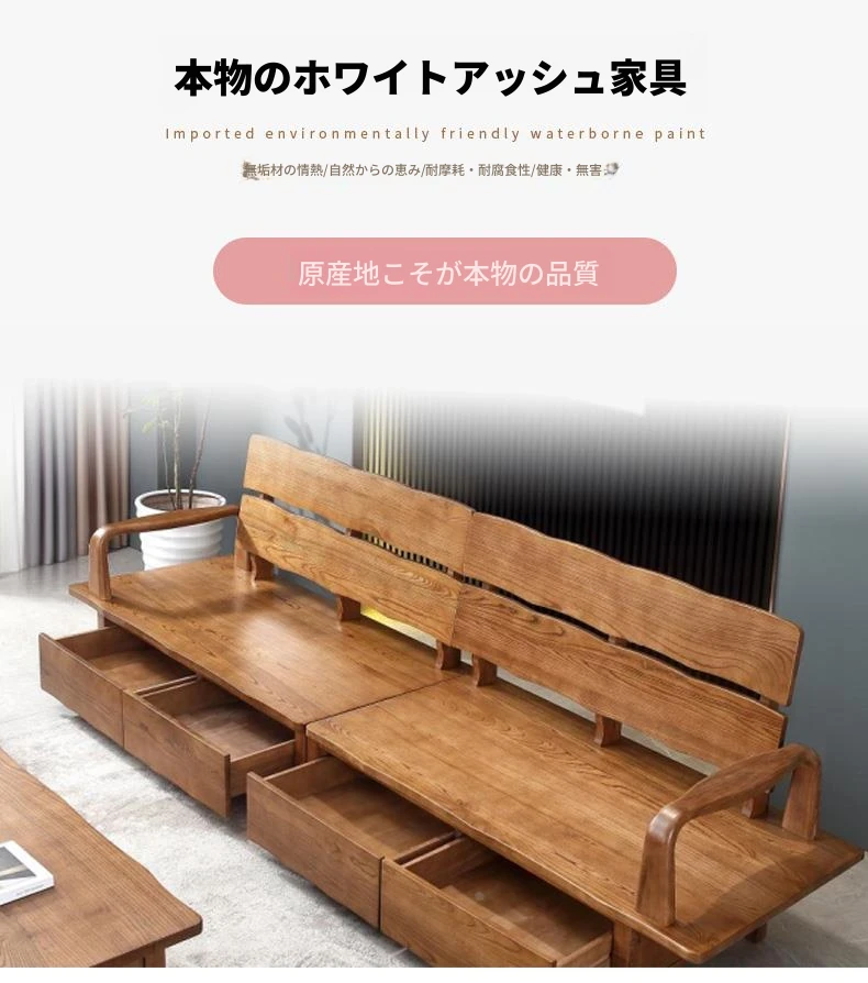 北欧デザインのホワイトアッシュ無垢材製ソファ!冬夏兼用、3人掛け・4人掛けの収納付き。シンプルでスタイリッシュな和風大板デザイン、引き出し収納でお部屋をスッキリ整理。快適なリビング空間を手に入れよう!