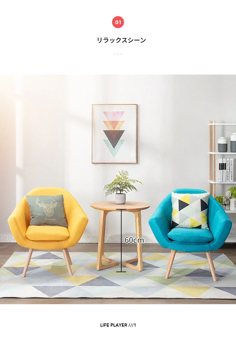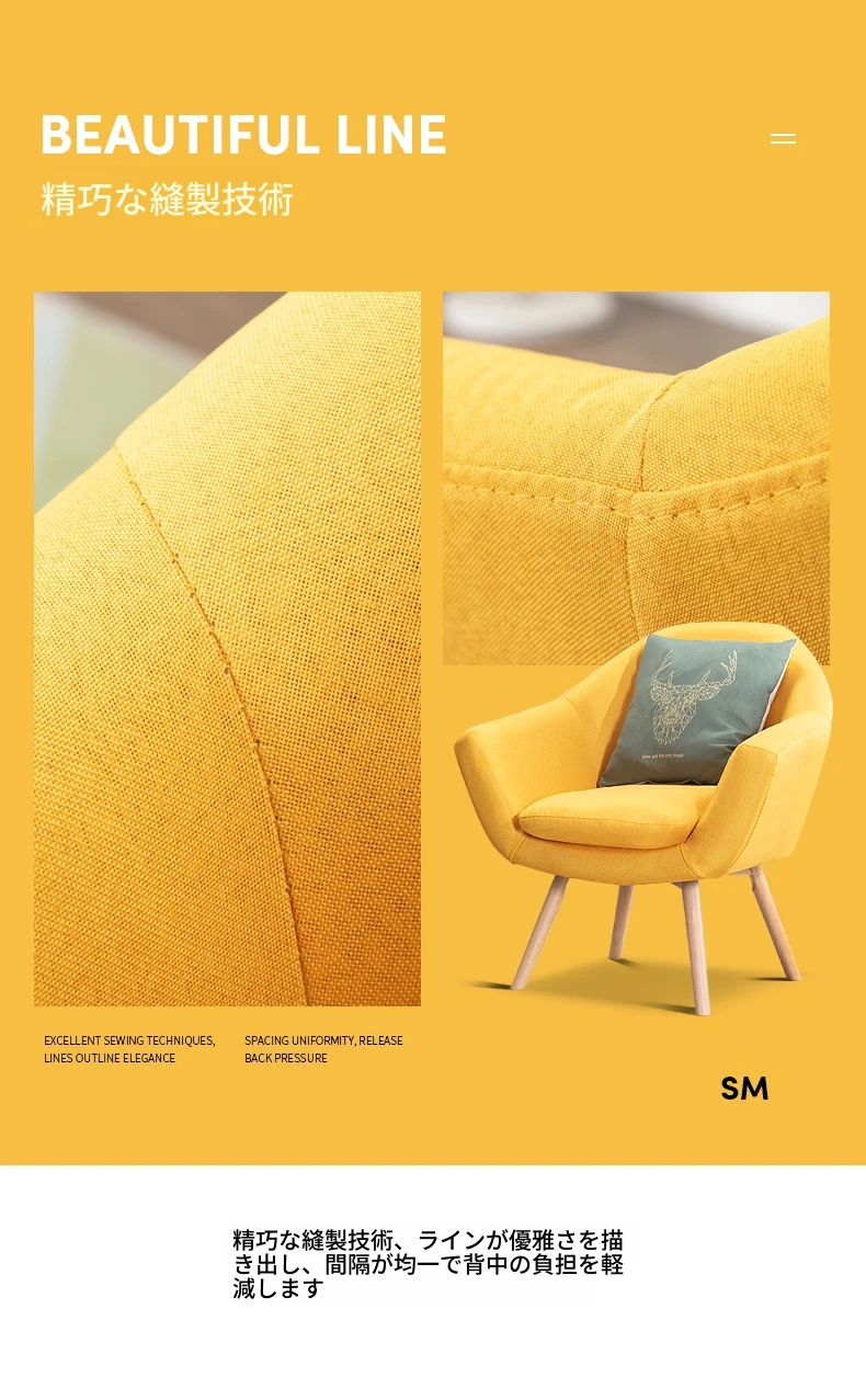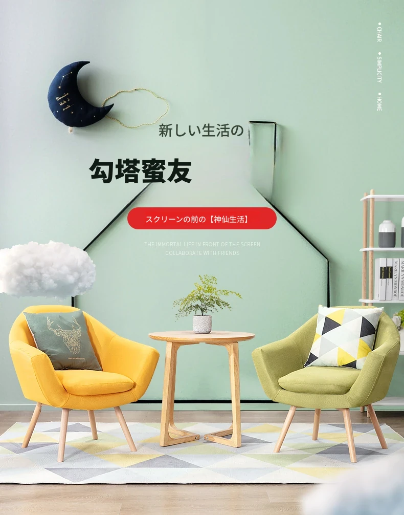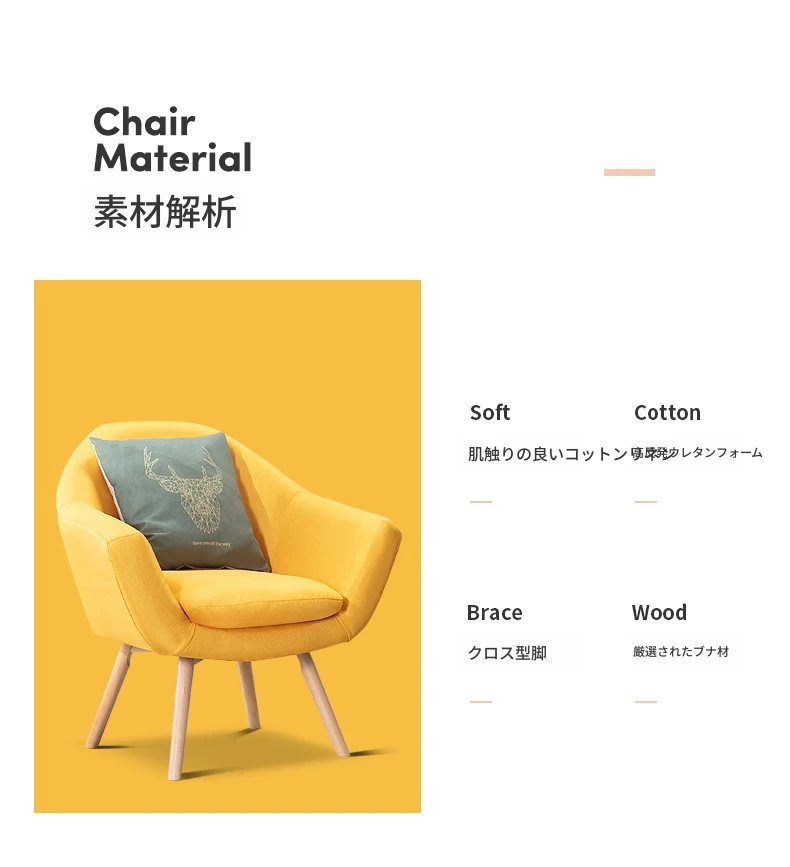 北欧スタイルのリラックス単身ソファ|小スペースに最適なバルコニー用椅子|寝室やカウンセリングルームにもぴったり!快適さとデザインを兼ね備えた一人掛けソファ。