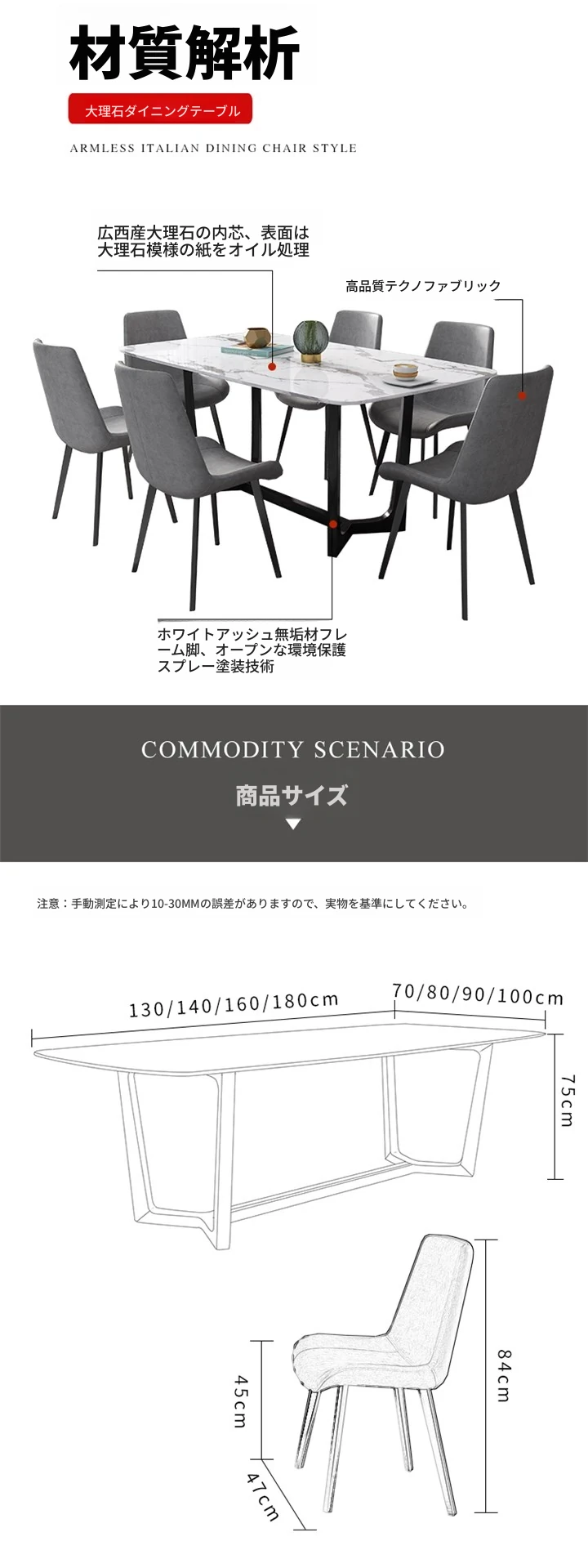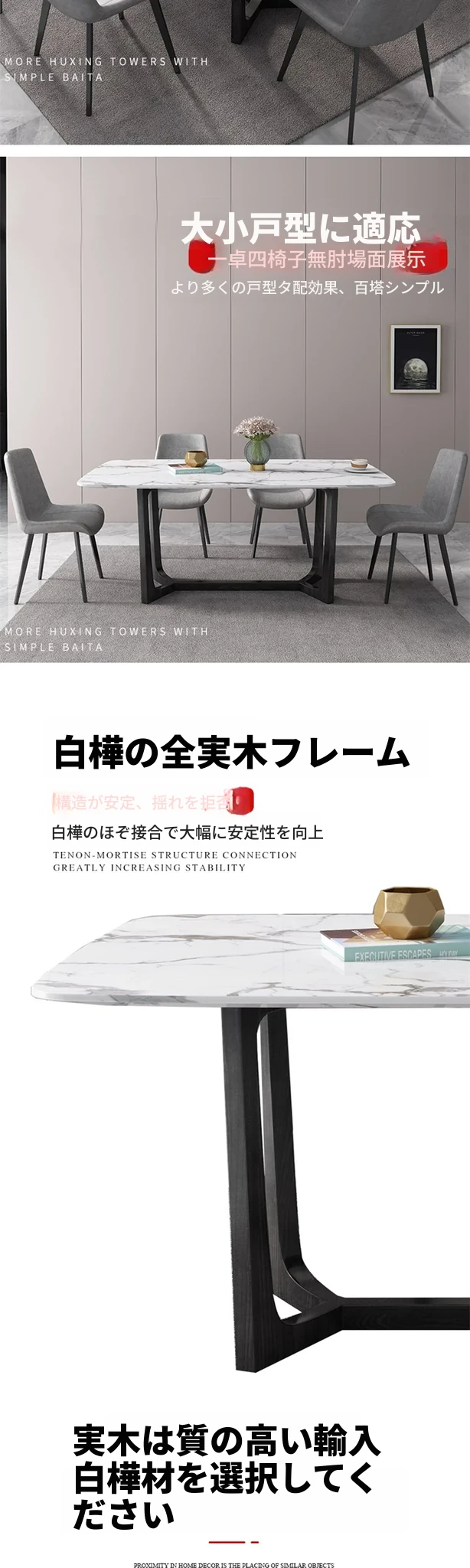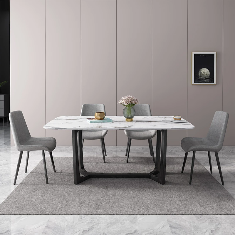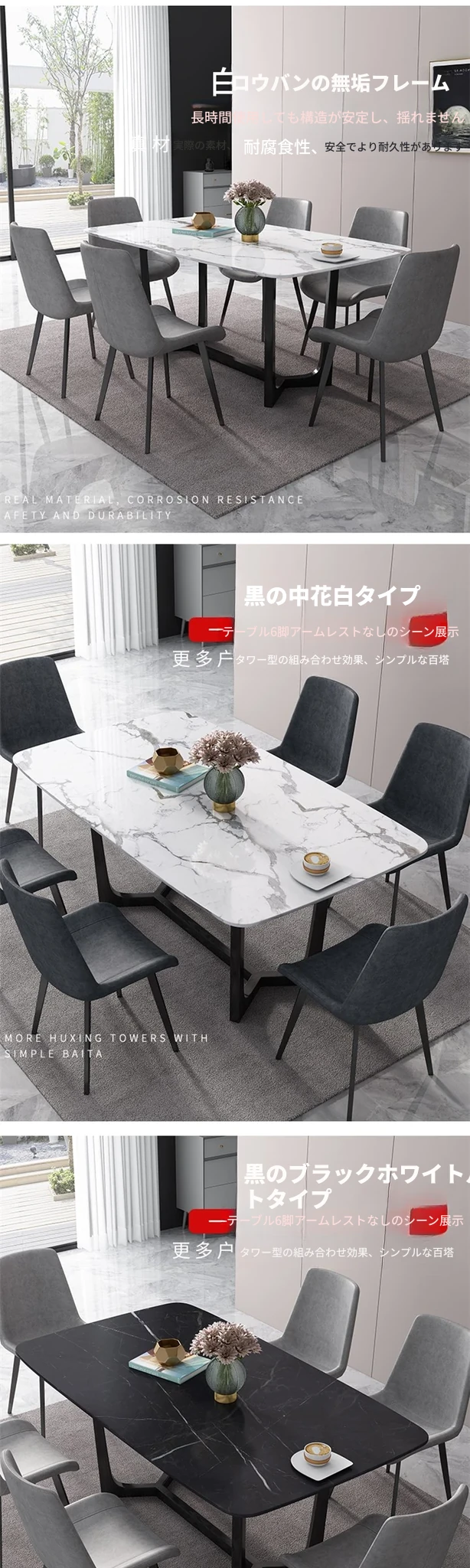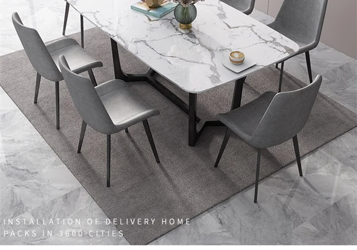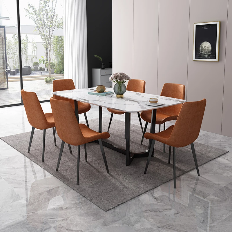 北欧スタイルの大理石ダイニングテーブル&チェアセット 4人用・6人用 家庭用 シンプルでモダンな小型イタリアンデザイン 実木の長方形テーブルで、居心地の良い食事空間を演出!