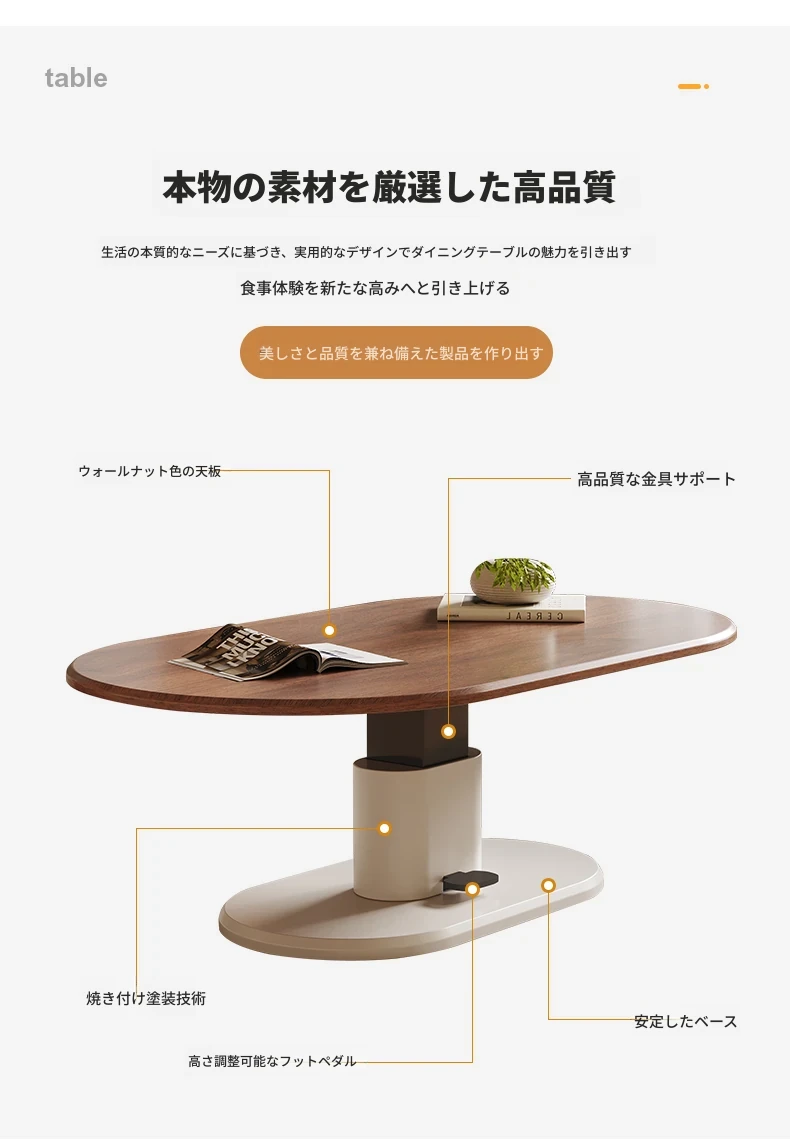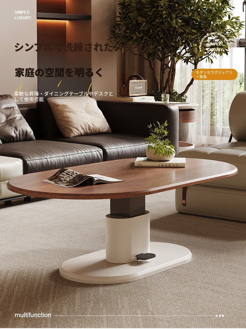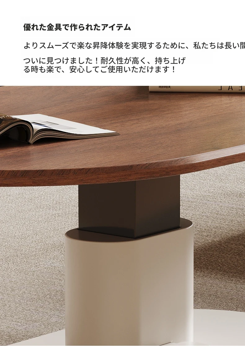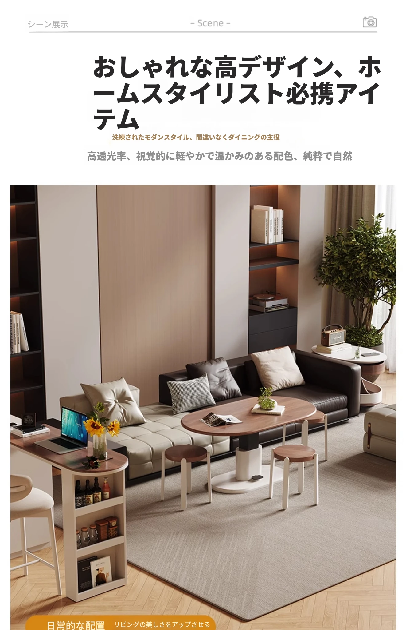 北欧スタイルのモダン昇降テーブル|リビングにも最適なコンパクトサイズ|ダイニングテーブルとしても使える2in1デザイン|天然木と岩板の贅沢な組み合わせで、スタイリッシュな空間を演出!