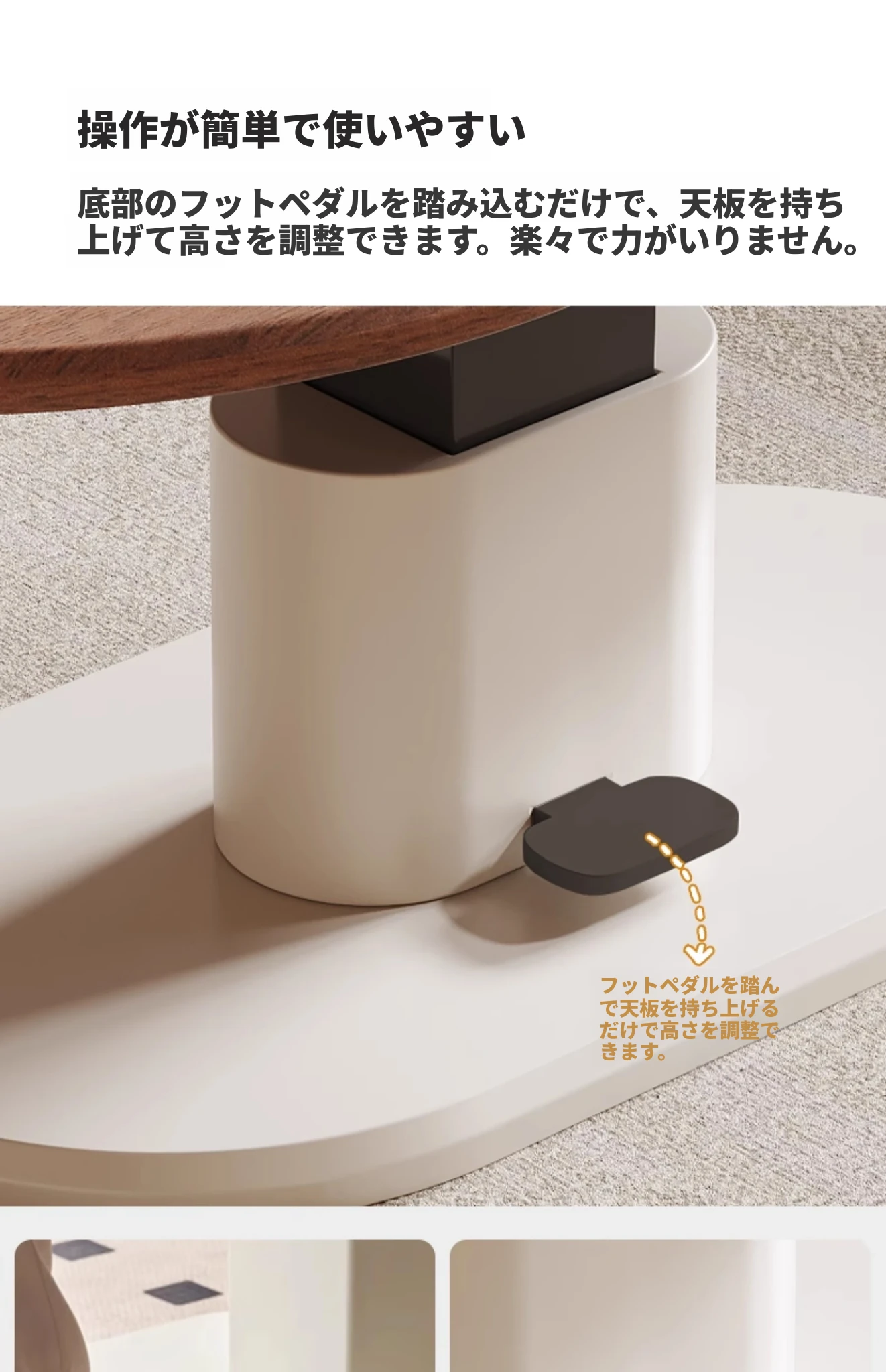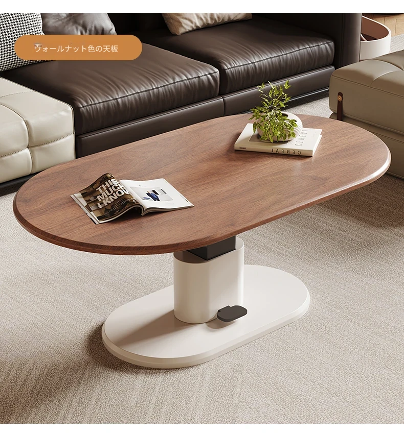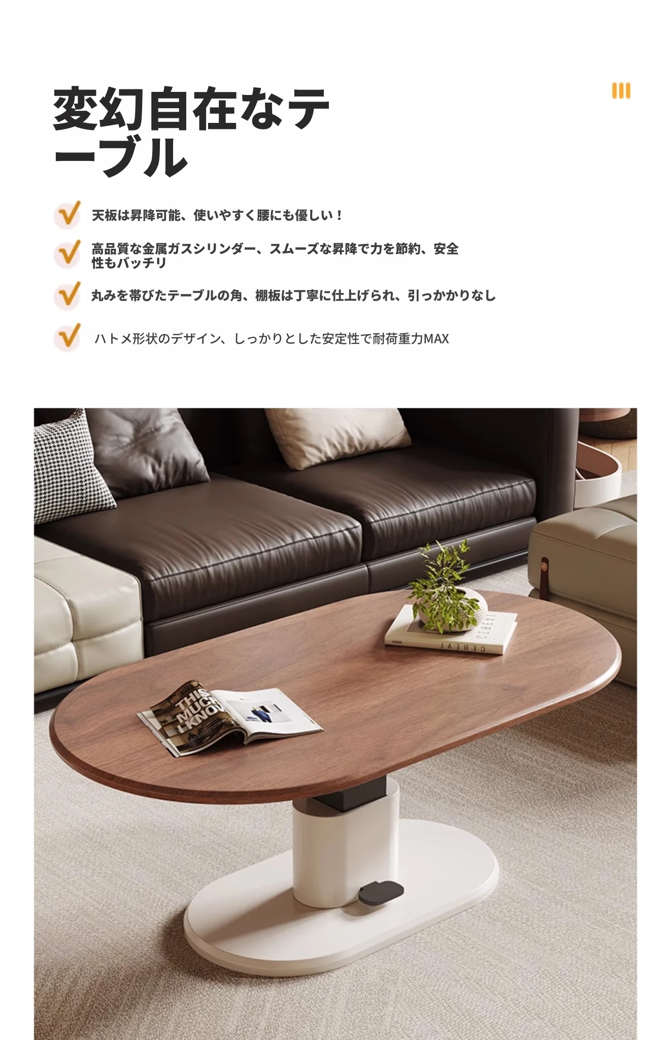 北欧スタイルのモダン昇降テーブル|リビングにも最適なコンパクトサイズ|ダイニングテーブルとしても使える2in1デザイン|天然木と岩板の贅沢な組み合わせで、スタイリッシュな空間を演出!
