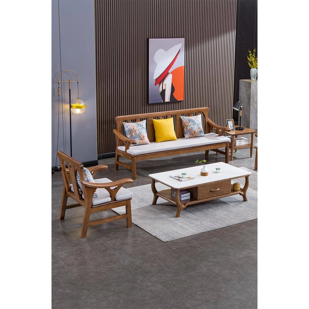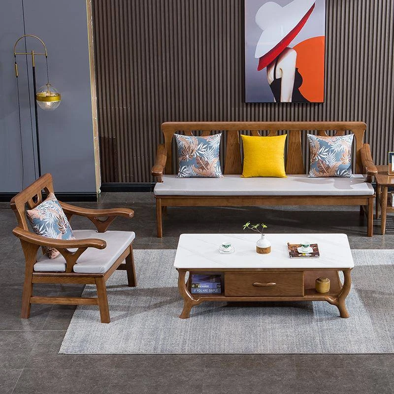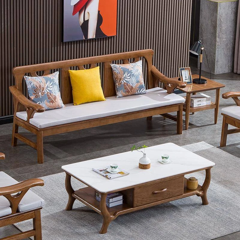 スカンジナビア風全自然木アッシュウッドソファ - 冬夏両用の新中式モダンシンプルデザイン、小型リビングにぴったりな三人掛けソファ!快適さとスタイルを両立させた理想の家具です。