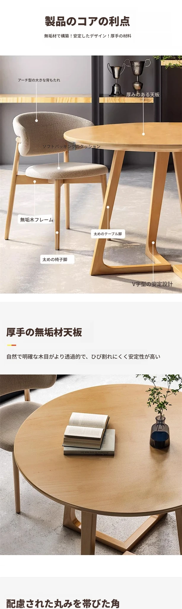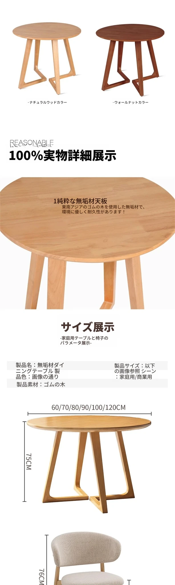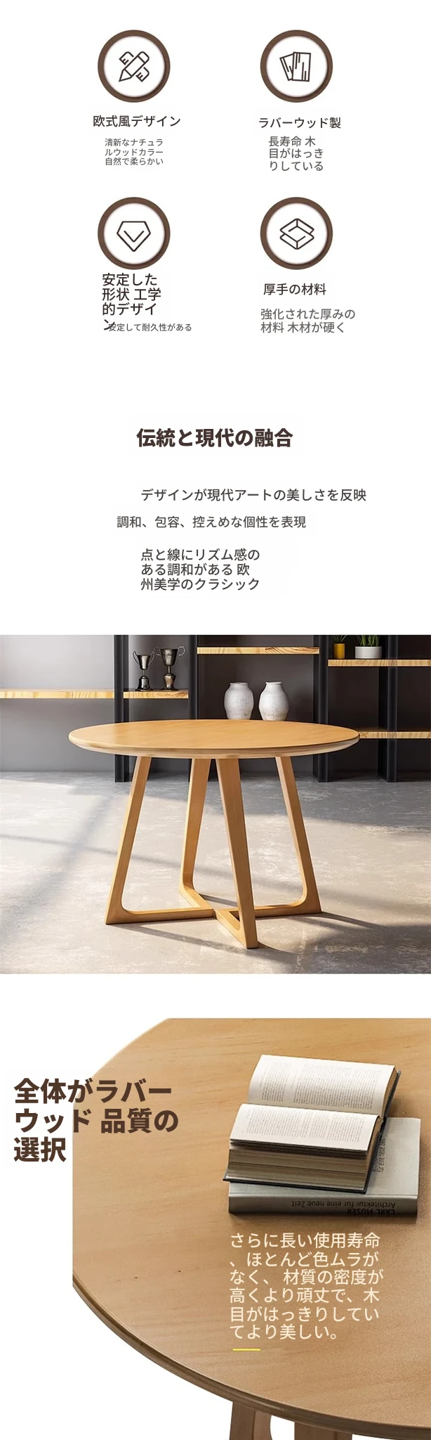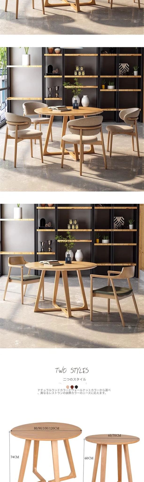 無垢材使用の丸型テーブル - オーク製の実用的なカフェテーブル!小型住宅にもぴったりなこのリラックスできるダイニングテーブルは、商業用にも最適です。おしゃれで機能的なデザインで、あなたのスペースを魅力的に彩ります!