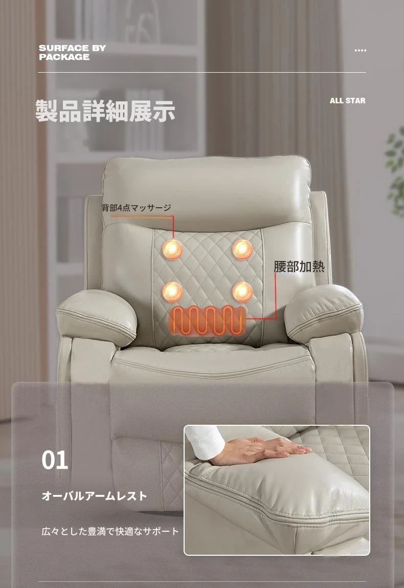 一人用電動リクライニングソファ|おしゃれで快適なリラックス空間を実現!狭いお部屋にもぴったりなマッサージ機能付き、バルコニーやリビングで心地よいひとときをお楽しみください。