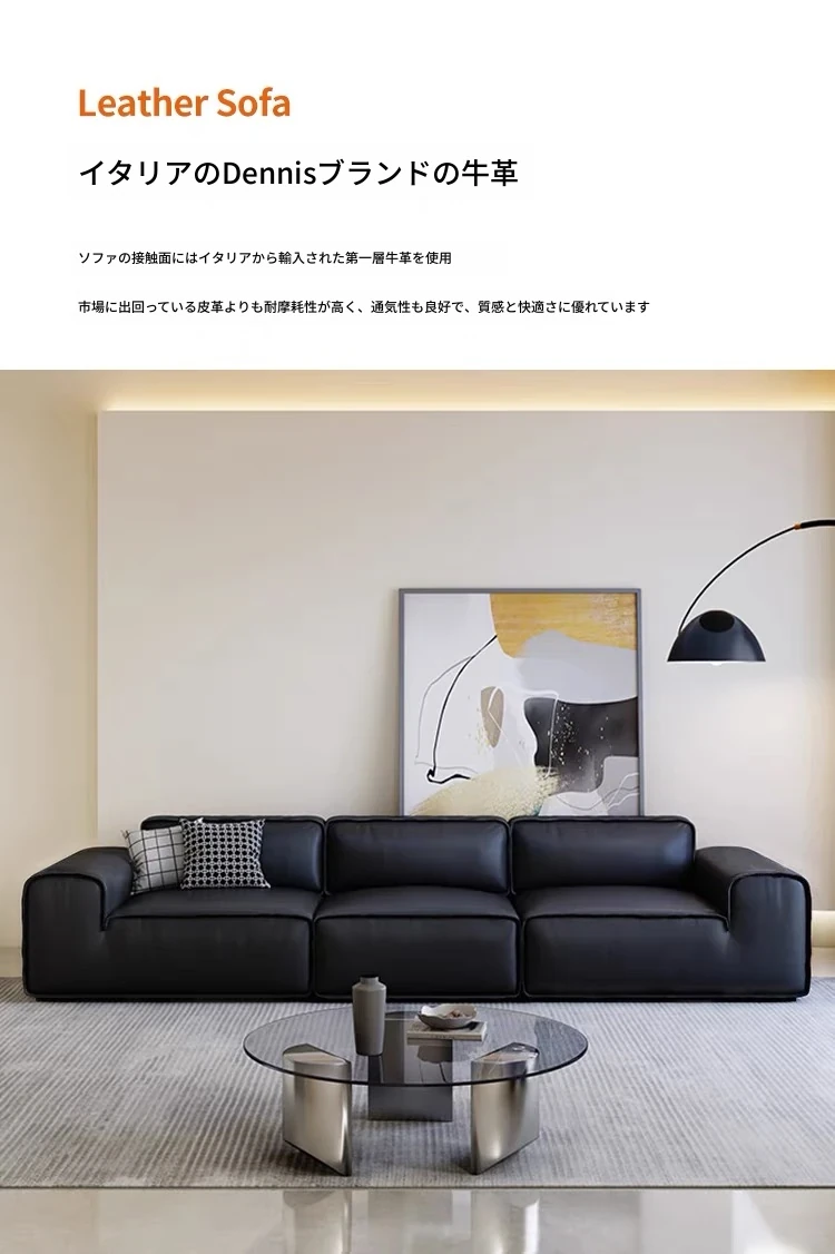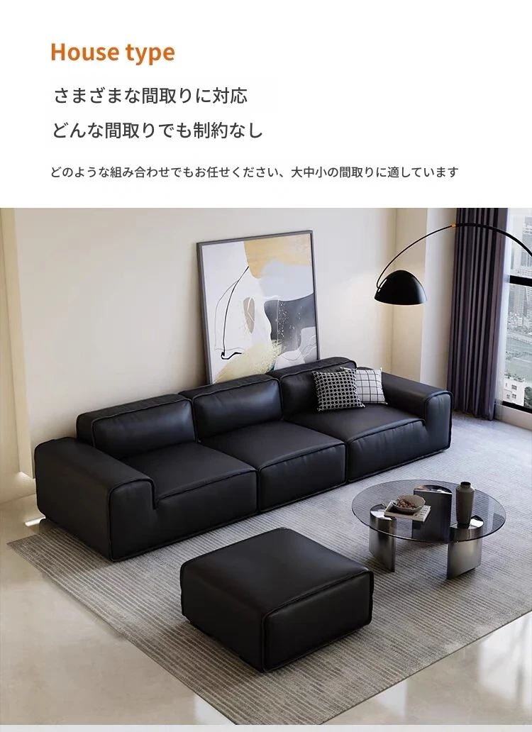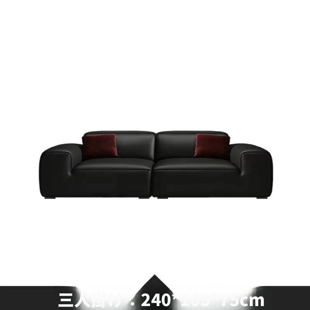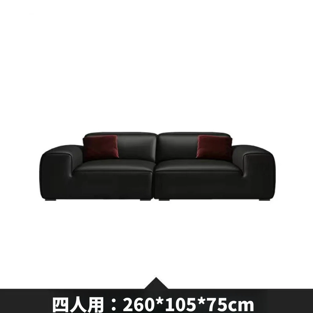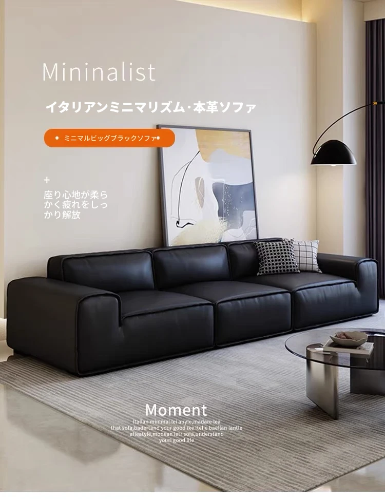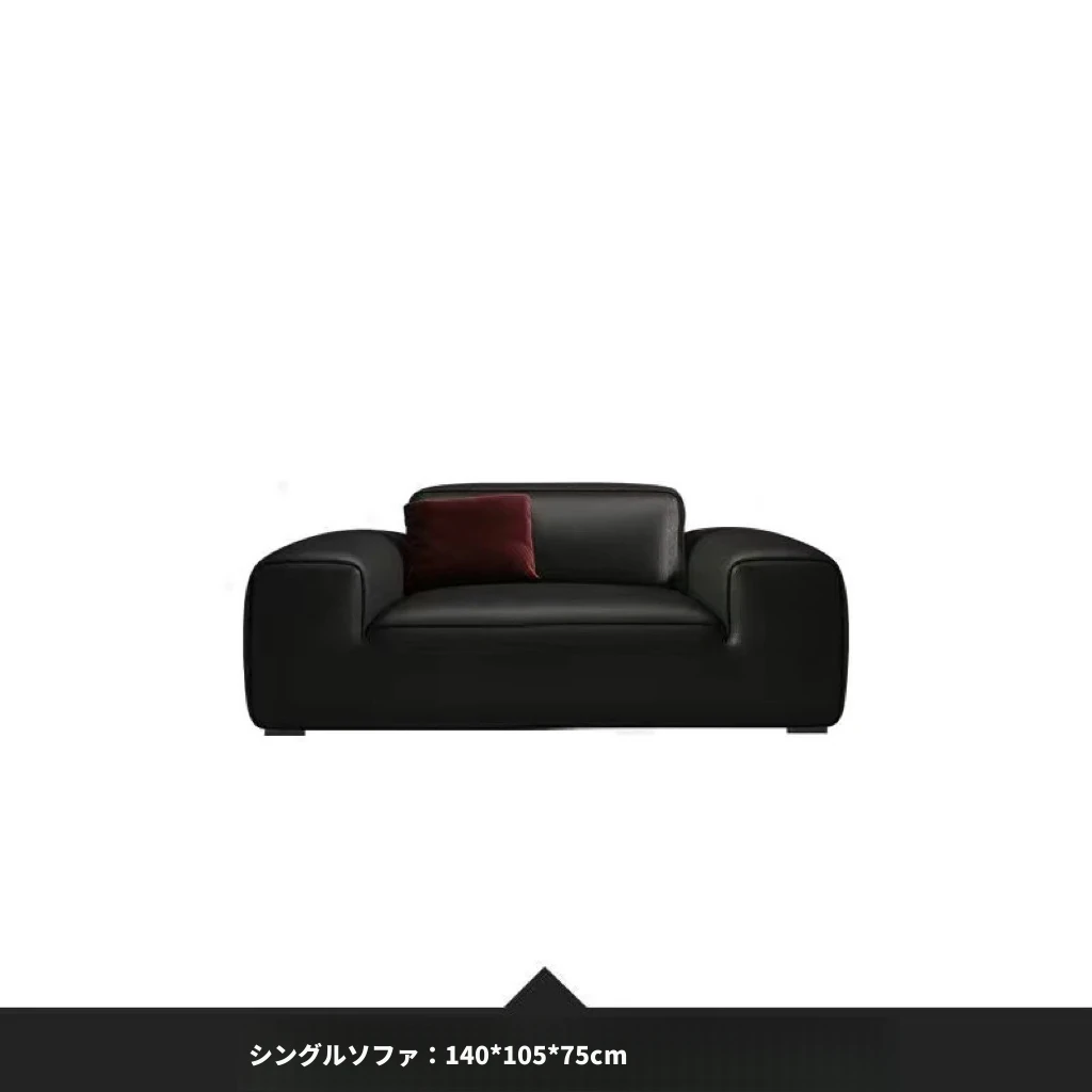 夏図の大黒牛ソファ - 本革使用のイタリアンミニマリズム!小型リビングにぴったりの豆腐ブロックデザイン、シックなブラックで洗練された空間を演出。快適さとスタイルを両立した一品です。