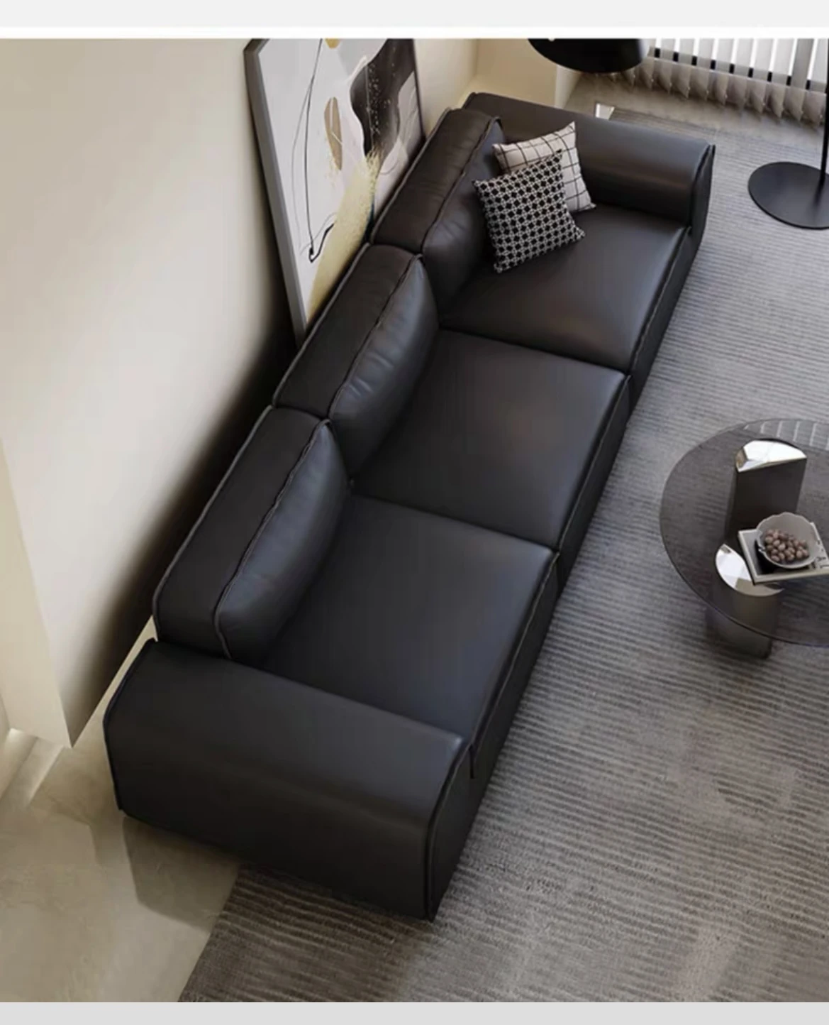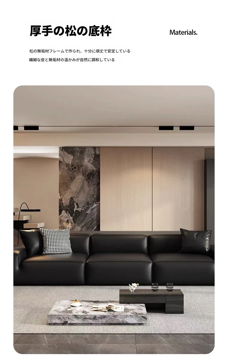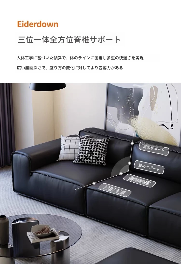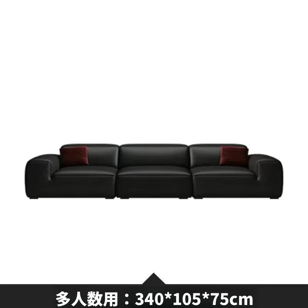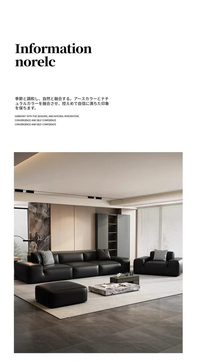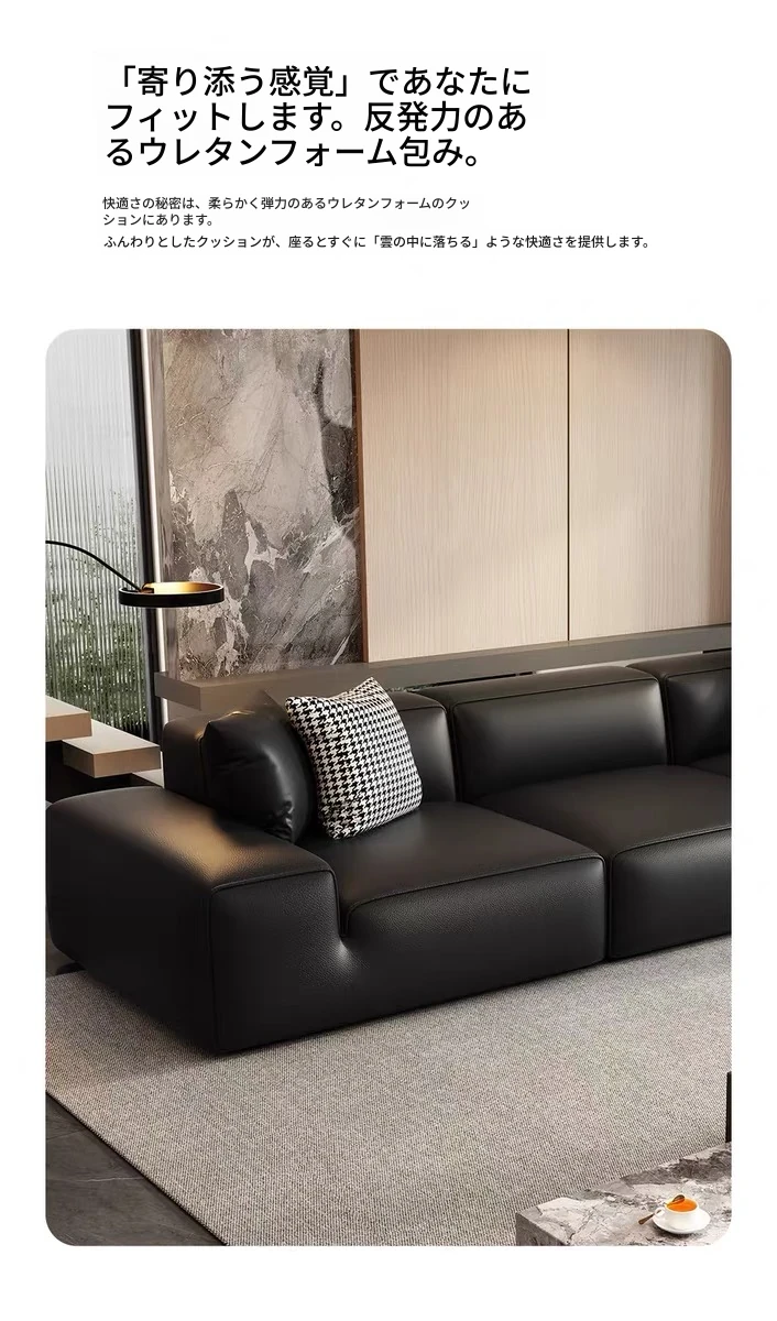 夏図の大黒牛ソファ - 本革使用のイタリアンミニマリズム!小型リビングにぴったりの豆腐ブロックデザイン、シックなブラックで洗練された空間を演出。快適さとスタイルを両立した一品です。