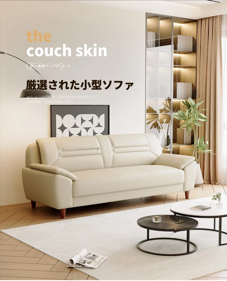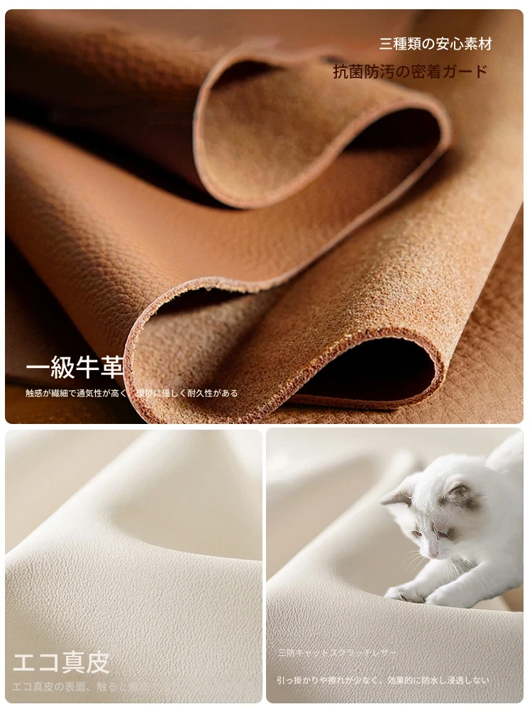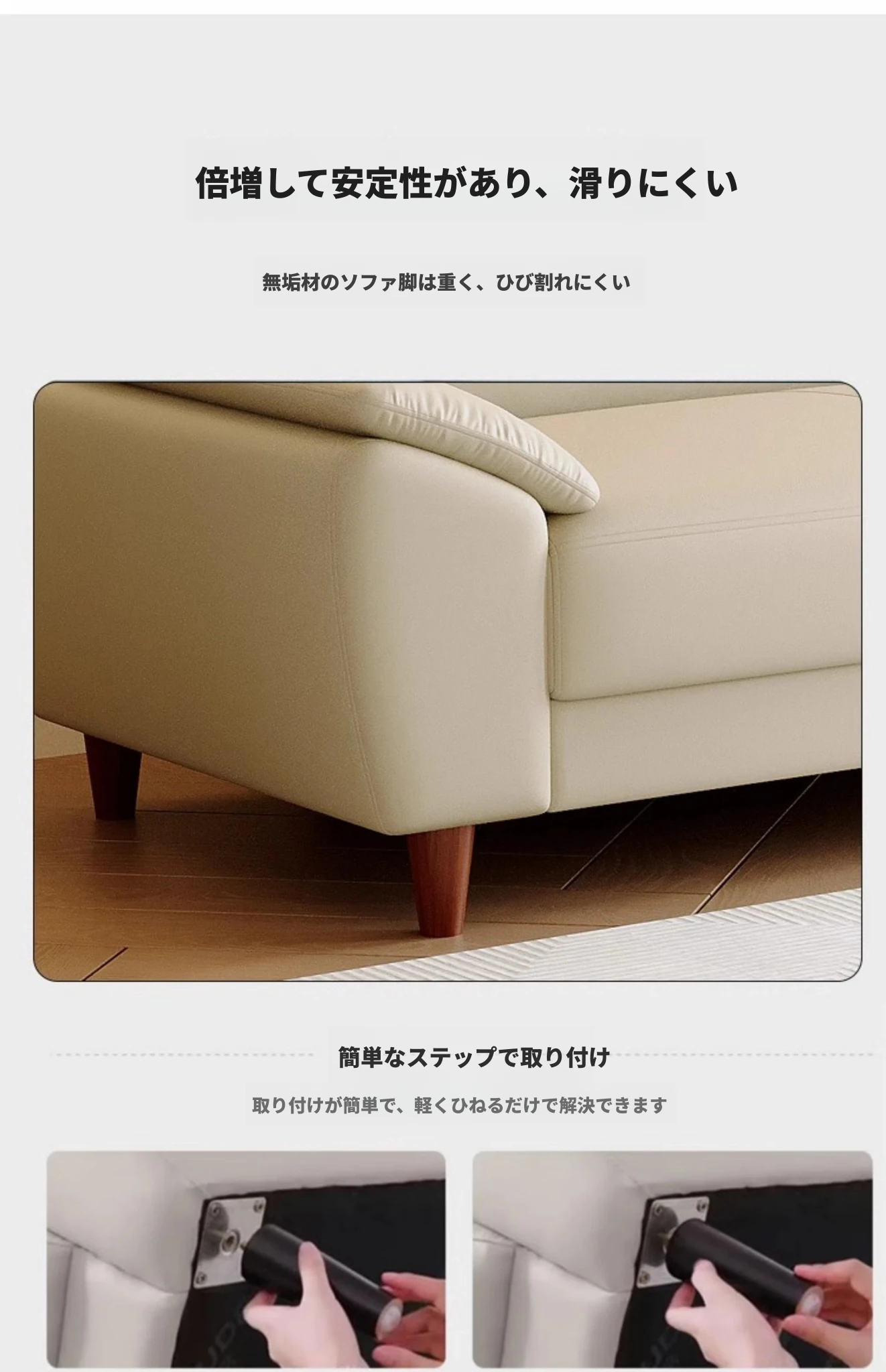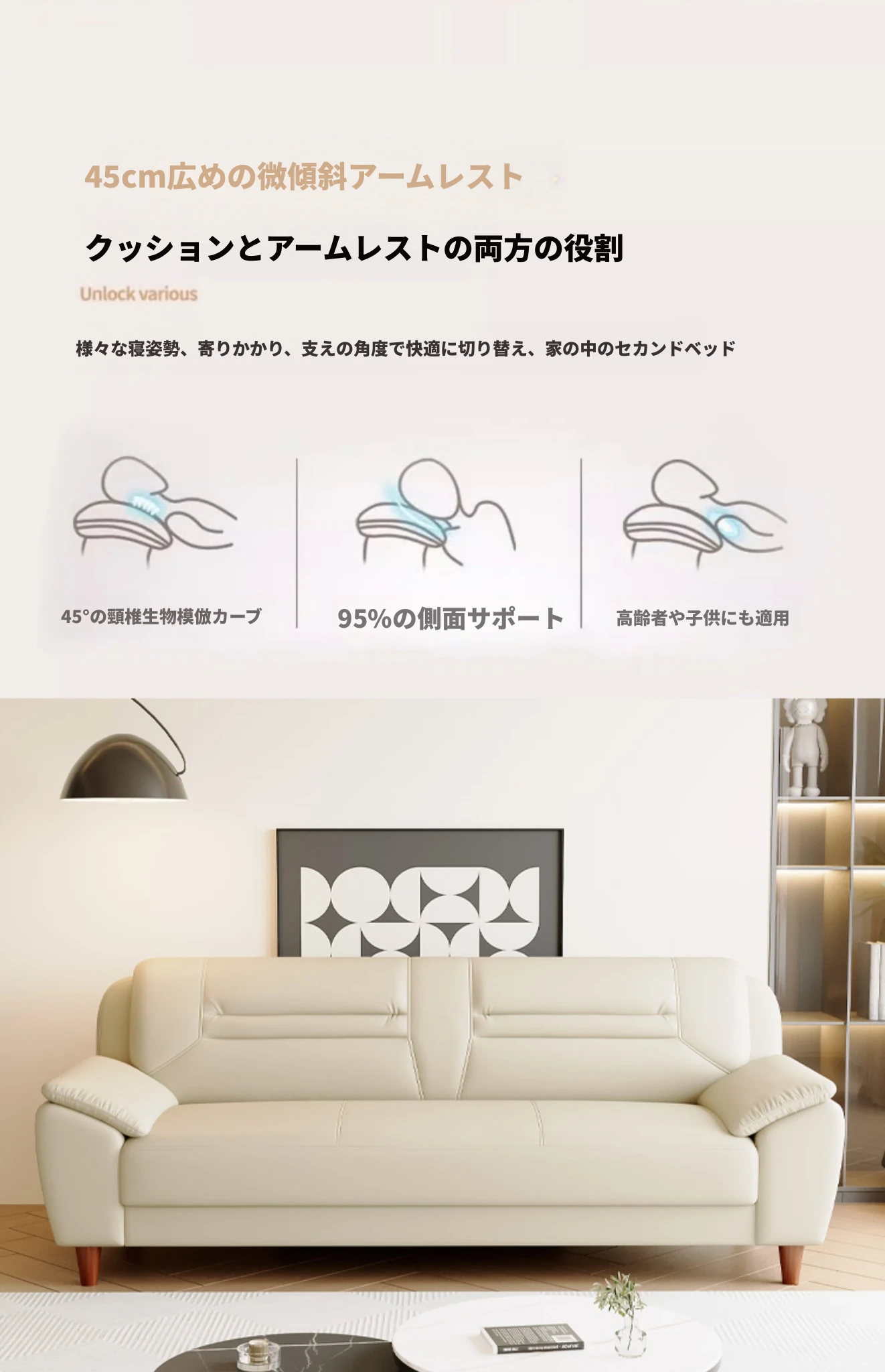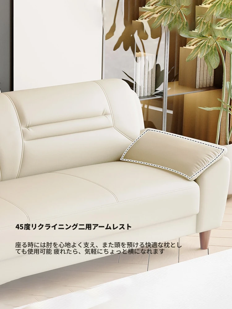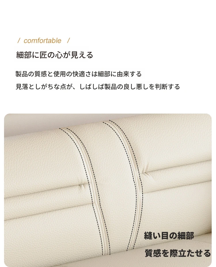 軽やかなラグジュアリー!本革製ソファー・小型住宅向けのシンプルでモダンなリビング用3人掛けコンビネーションセット。スリムなデザインで、ダブルレイアウトの革張りソファーが心地よい空間を演出します。