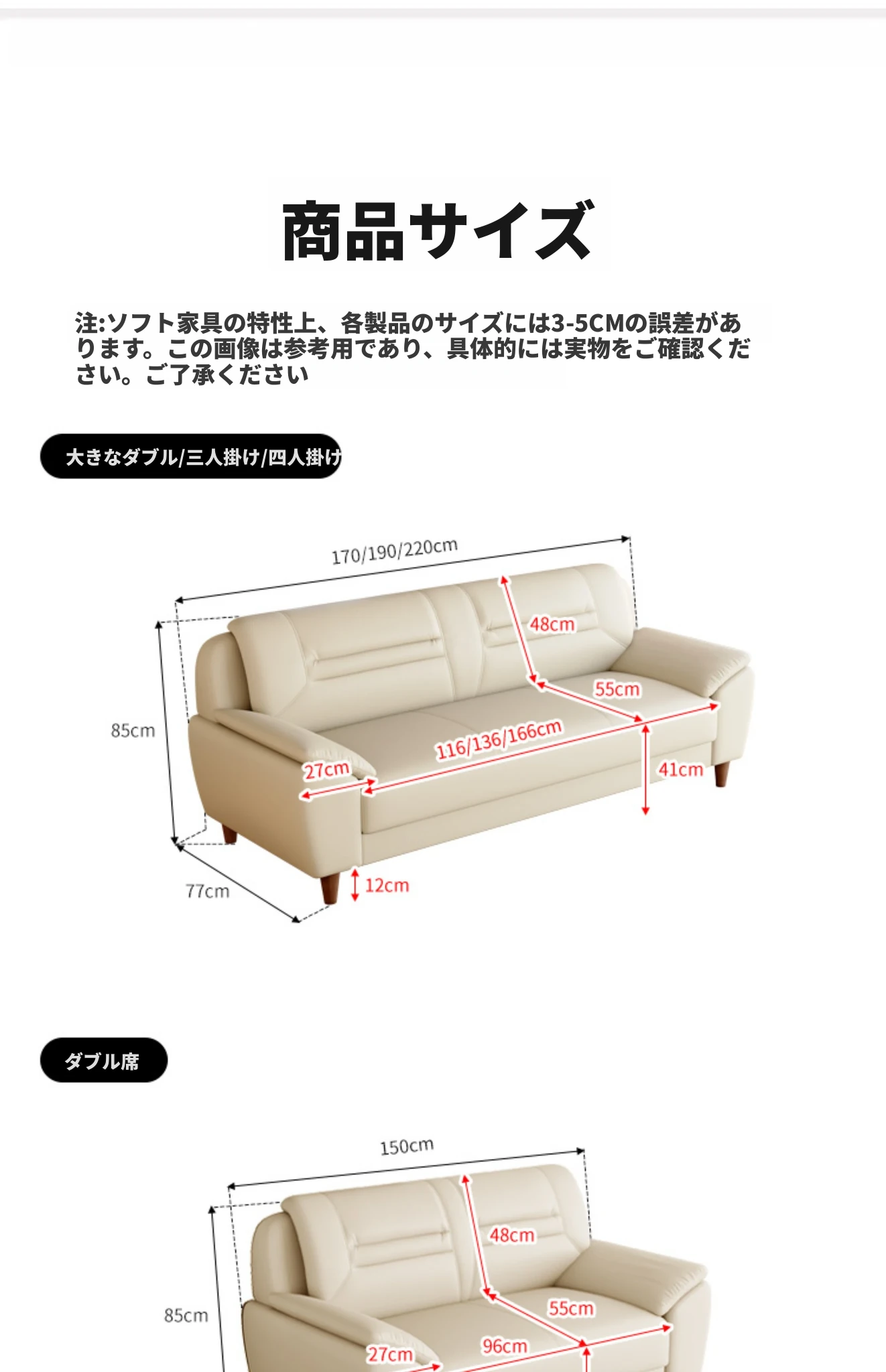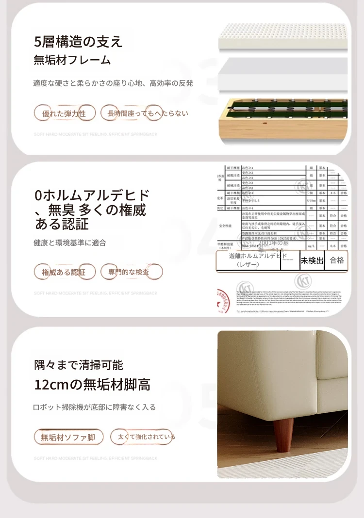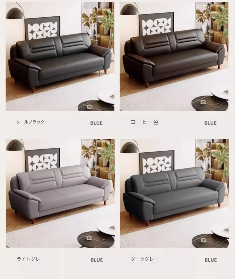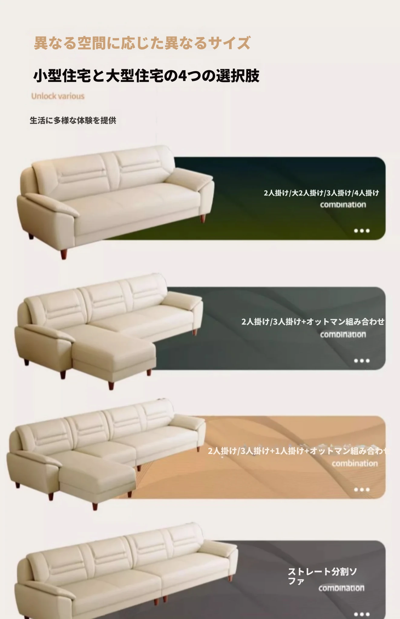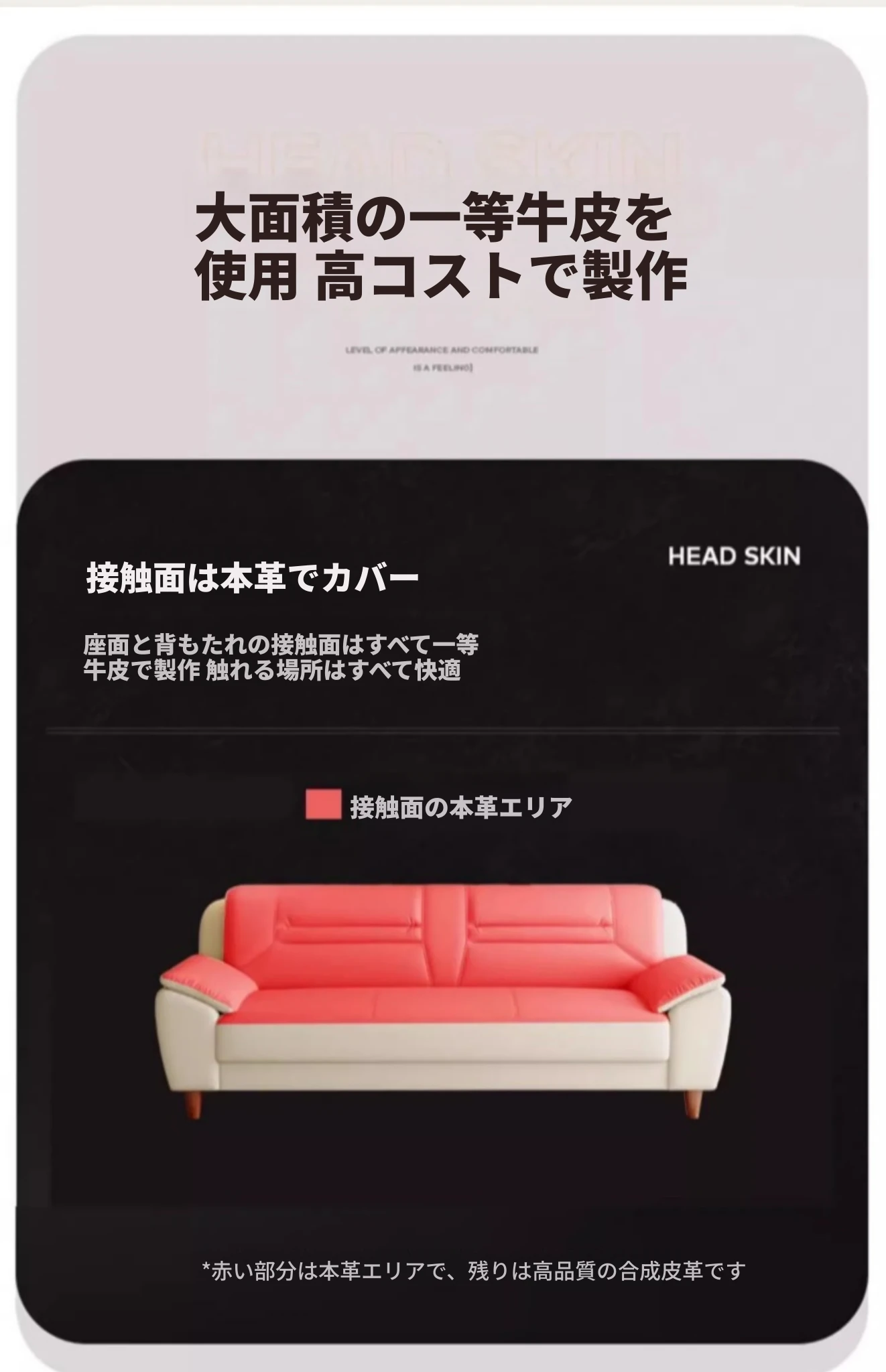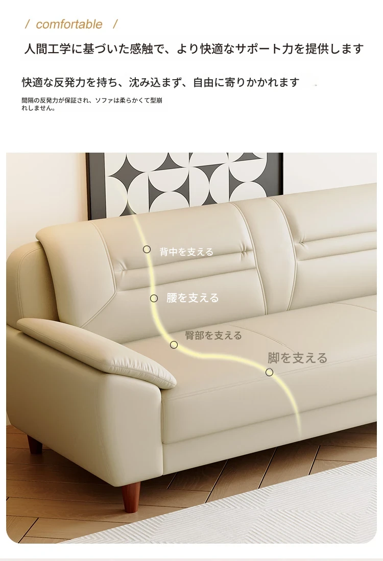 軽やかなラグジュアリー!本革製ソファー・小型住宅向けのシンプルでモダンなリビング用3人掛けコンビネーションセット。スリムなデザインで、ダブルレイアウトの革張りソファーが心地よい空間を演出します。