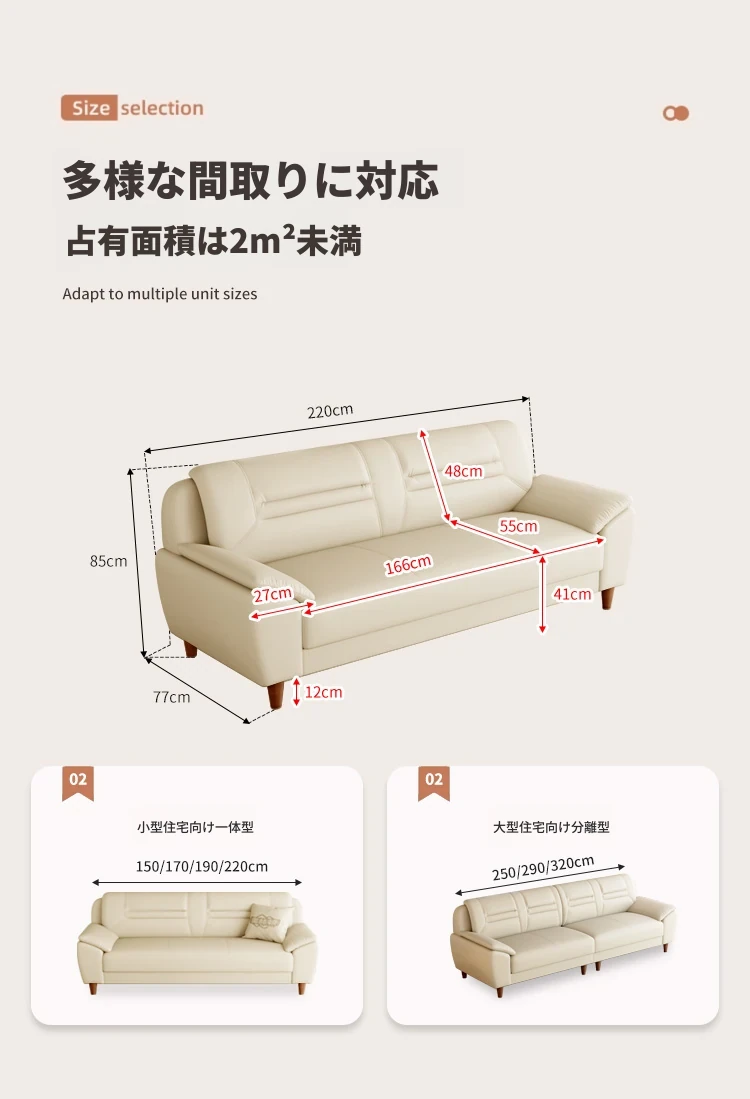 【厚手トップレザー牛革+ラテックスフォーム+フレーム生涯保証】3.2mマルチ版(分割) ラグジュアリー版