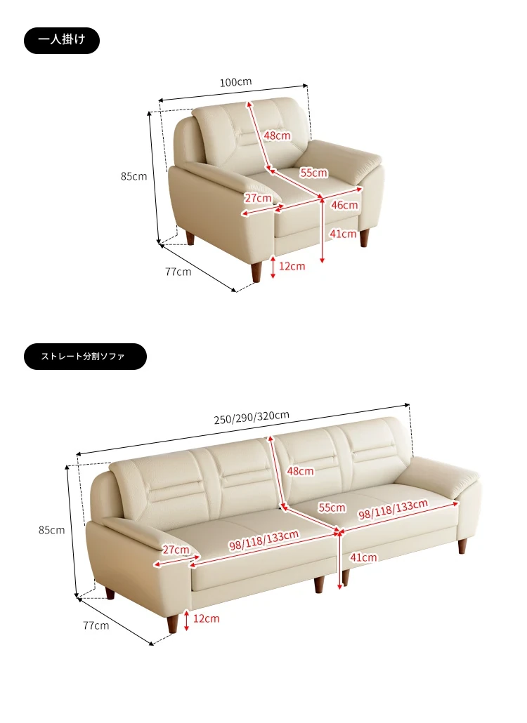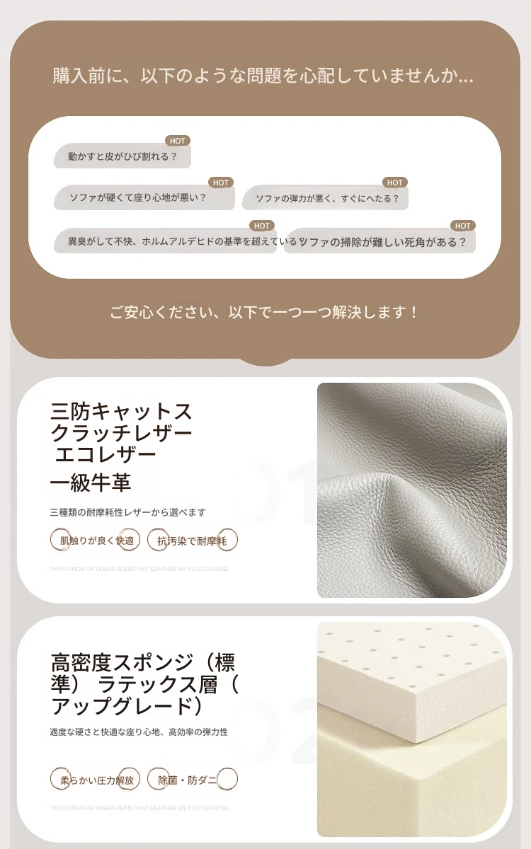 【厚手トップレザー牛革+ラテックスフォーム+フレーム生涯保証】2.9mマルチ版(分割) ラグジュアリー版