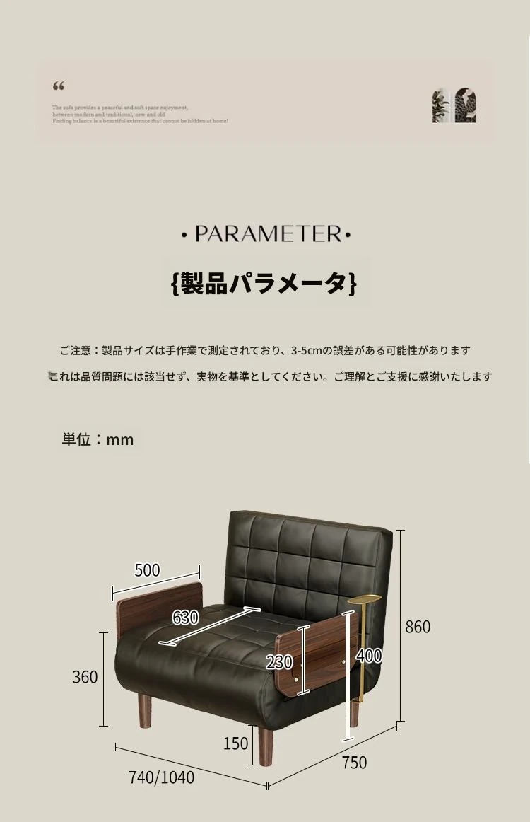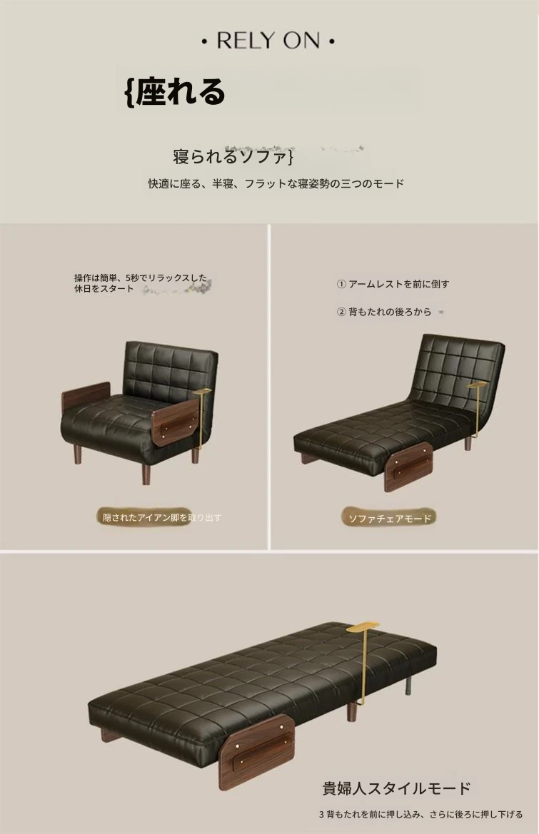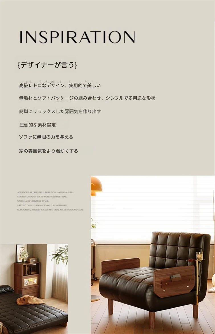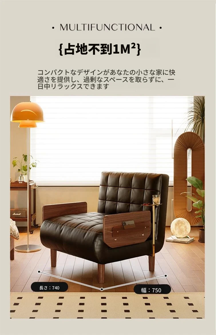 折りたたみ式多機能ソファベッド!小さなお部屋にもぴったりなリビング用レジャーチェア。高品質な本革使用、頑丈な無垢材フレームで安定感抜群。快適なひとときを提供する、洗練されたデザインの一人用ソファ!