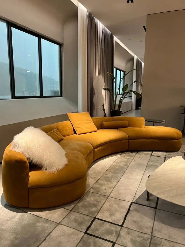 イタリアンミニマルアーチ型コーナーソファー、ブラックのユニークデザイン!大容量に対応した海塩雪ニール素材で、洗練されたインテリアを演出。あなたのリビングに個性とスタイルをプラスします!