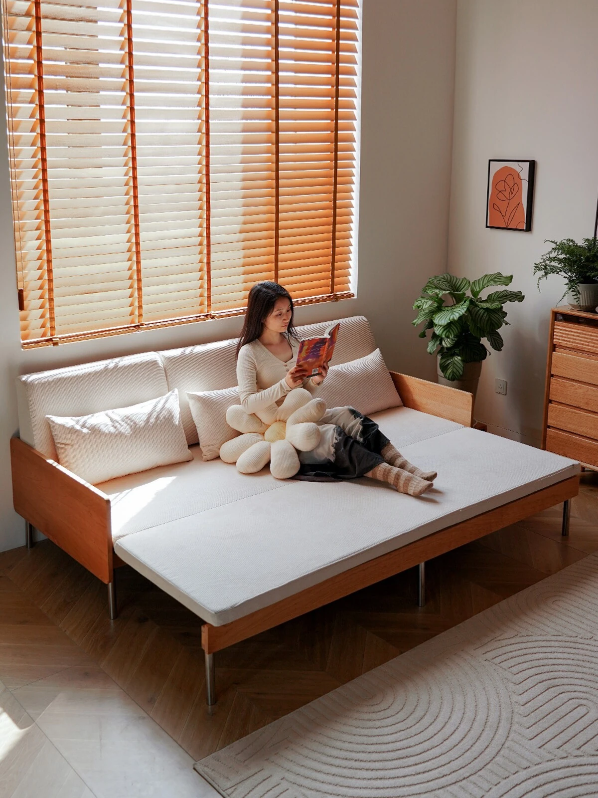 【新疆送料無料】省スペース!伸縮式の実木折りたたみソファベッド - 小型リビングに最適な二人用・一人用の万能デザイン!快適な座り心地と眠りを両立!