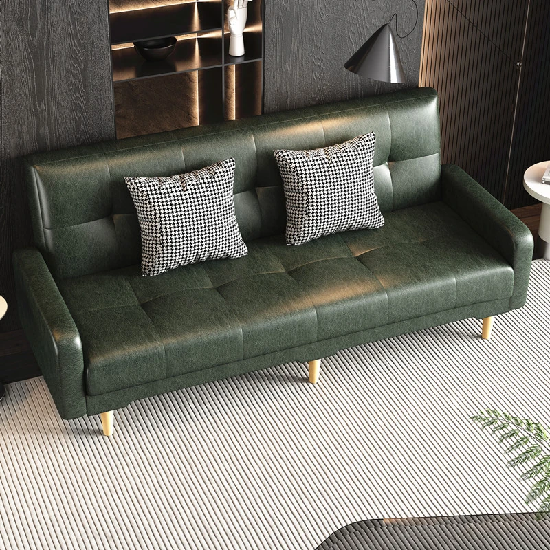Compact Balcony Leather Sofa Bed - PU Faux Leather Folding Single Bed for Small Apartments, Perfect for Multi-Functional Use in Rentals