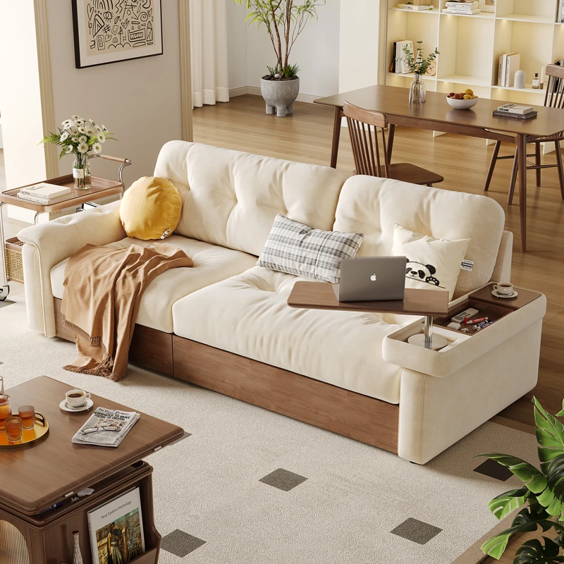 Multifunctional Solid Wood Sofa Bed with Storage - Stylish Cat Scratch Fabric for Small Apartments, Perfect for Living Rooms and Side Tables