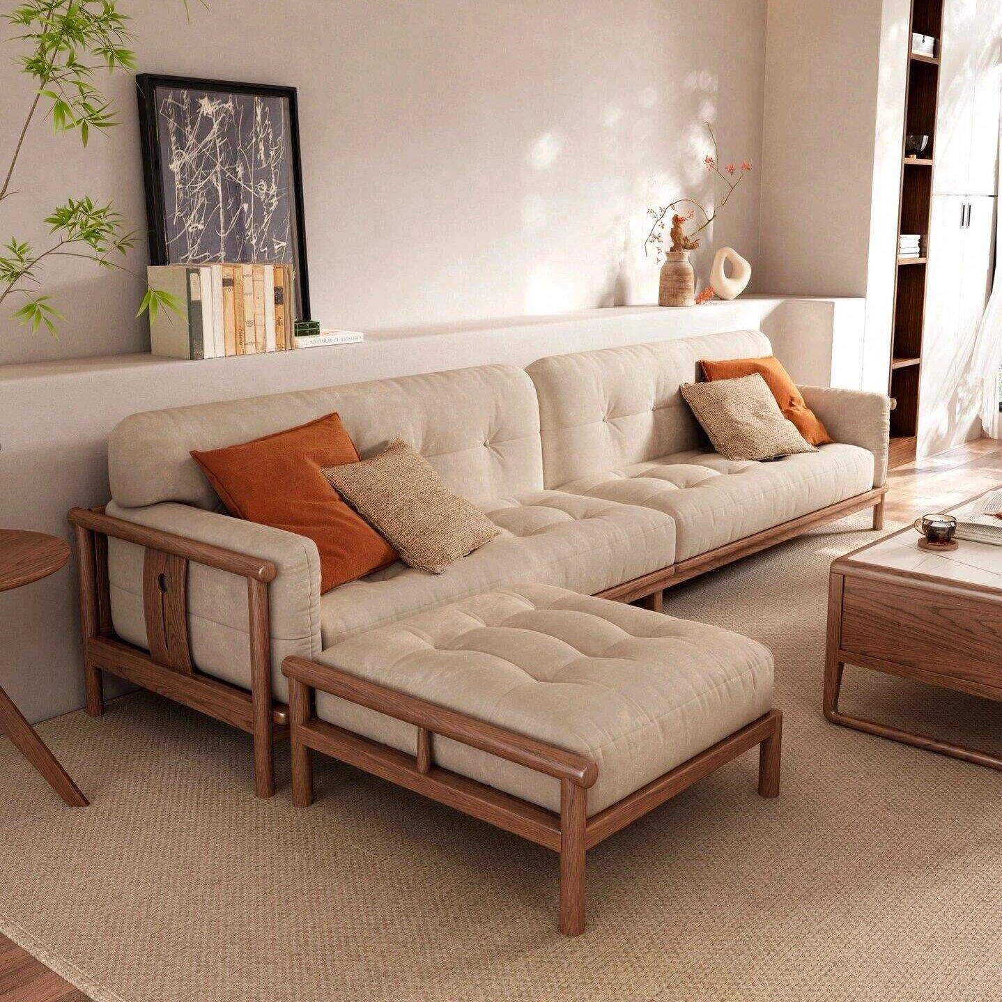 Nordic Minimalist Solid Wood Sofa - Creamy Fabric Couch for Small Living Rooms, Japanese Style Home Furniture, Perfect for Cozy Spaces