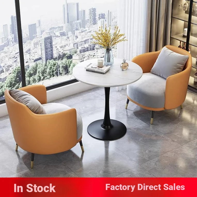Modern Reception Desk and Chair Set for Real Estate Offices - Trendy Lounge Sofa with Coffee Table, Perfect for Meetings and Negotiations, Includes One Small Round Table and Two Chairs
